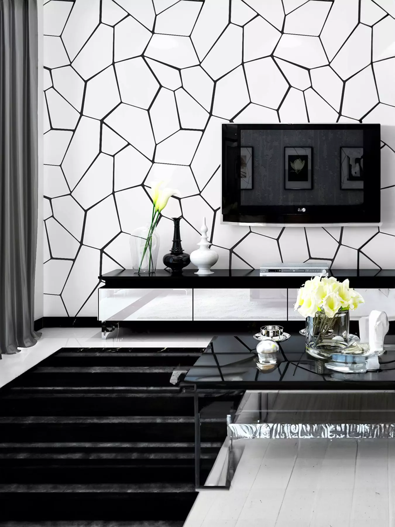 E.A.N: 7 4 7 6 7 4 3 6 1 8 9 0Living and Home Black Abstract Geometric Removable Patterned Wallpaper