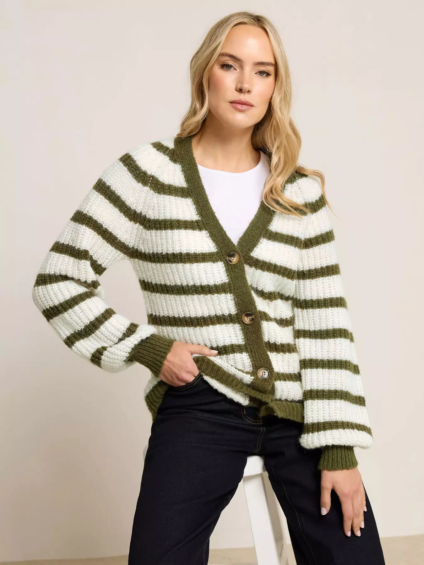 Long Tall SallyKhaki Stripe Cardigan - Green