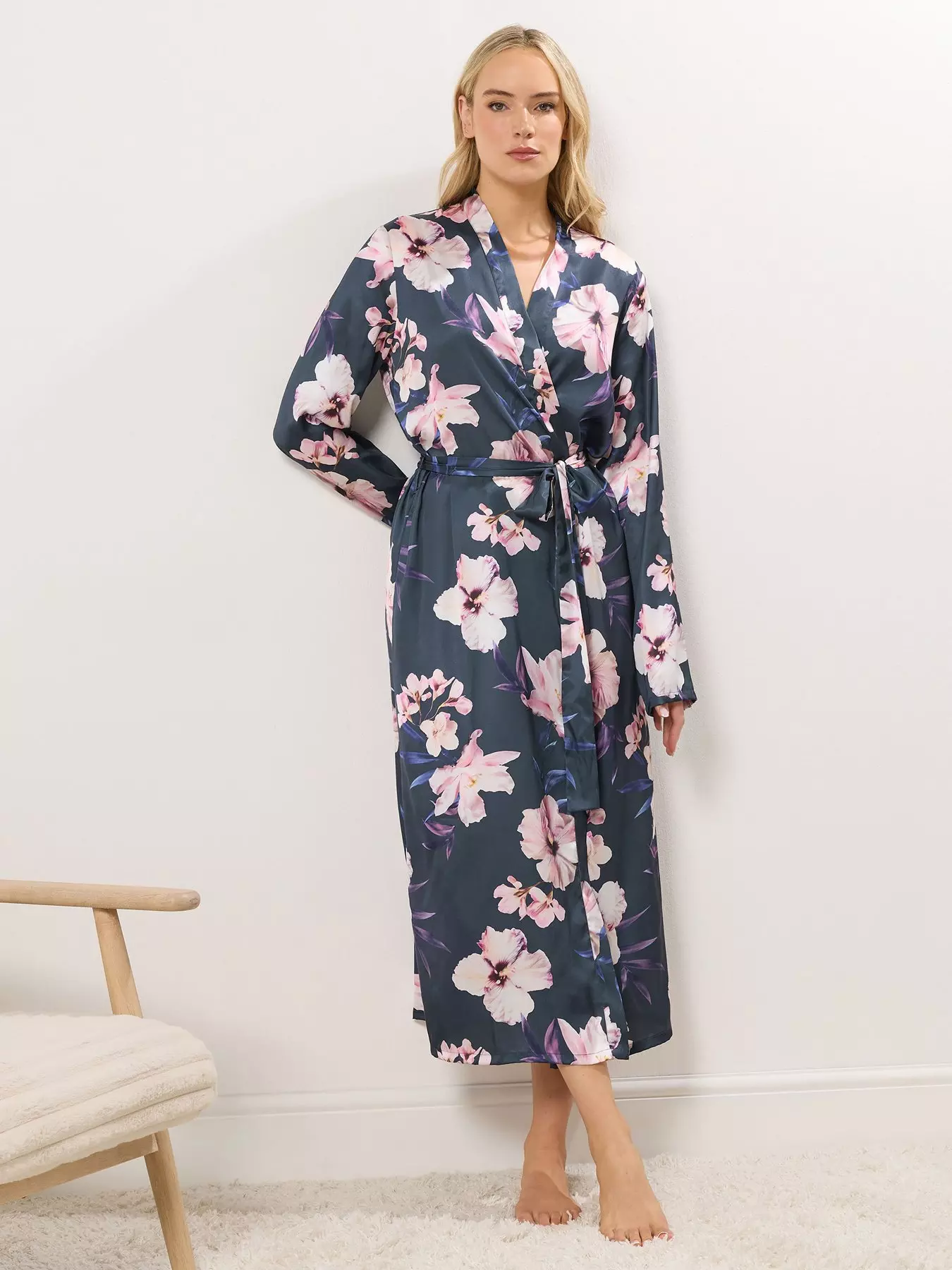 - Oversize Floral Maxi Satin Robe by Long Tall Sally