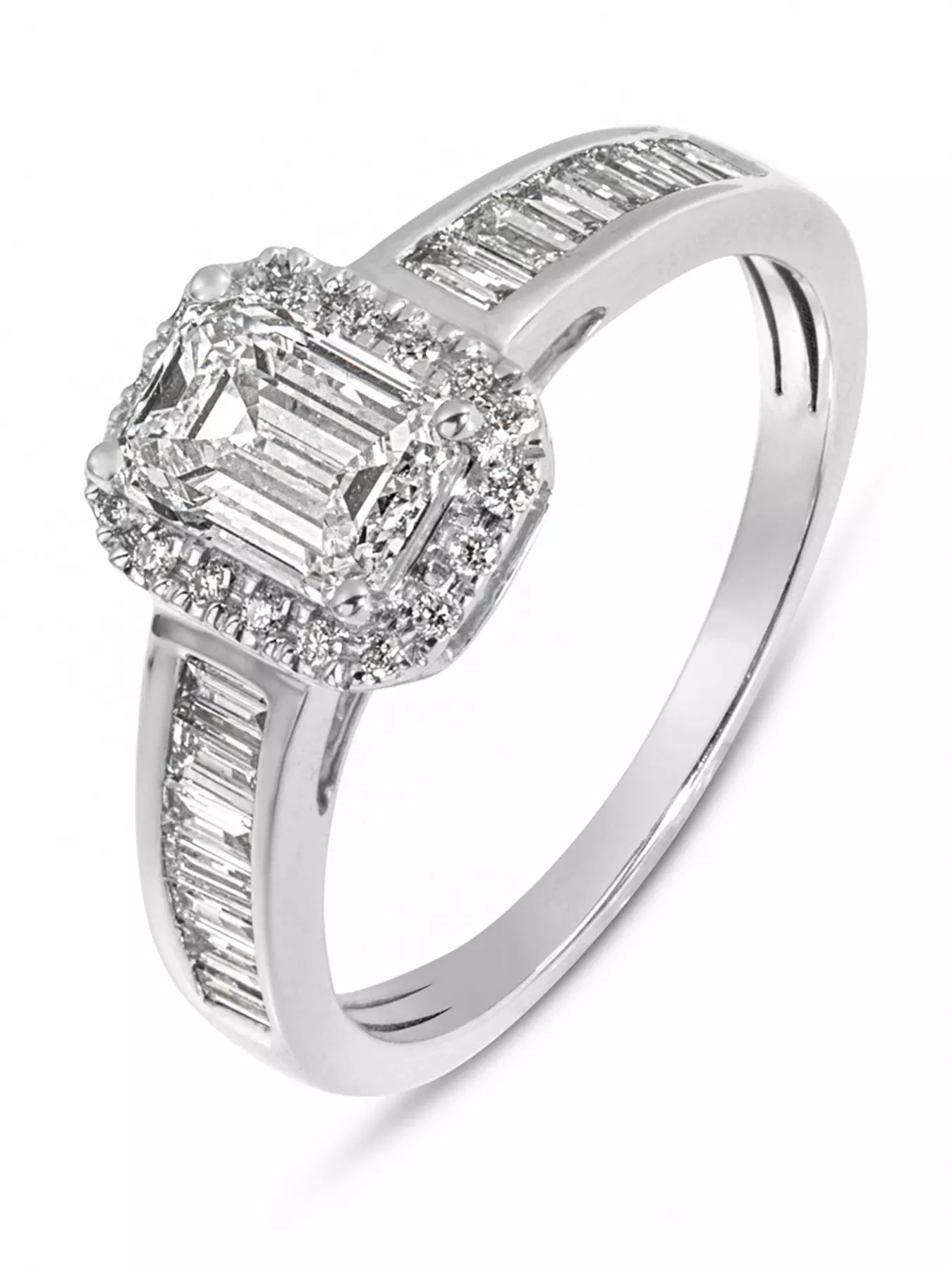 Love DIAMOND 1.40ct Emerald Cut Diamond Halo & Baguette Ring Lab Grown