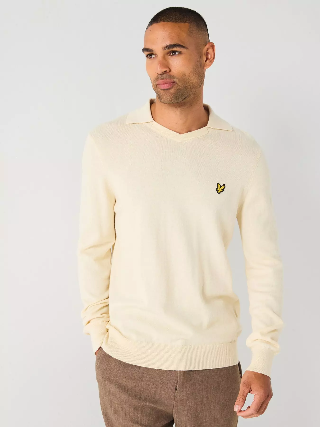 Lyle & ScottCotton Merino Football Open Collar Jumper - Cream