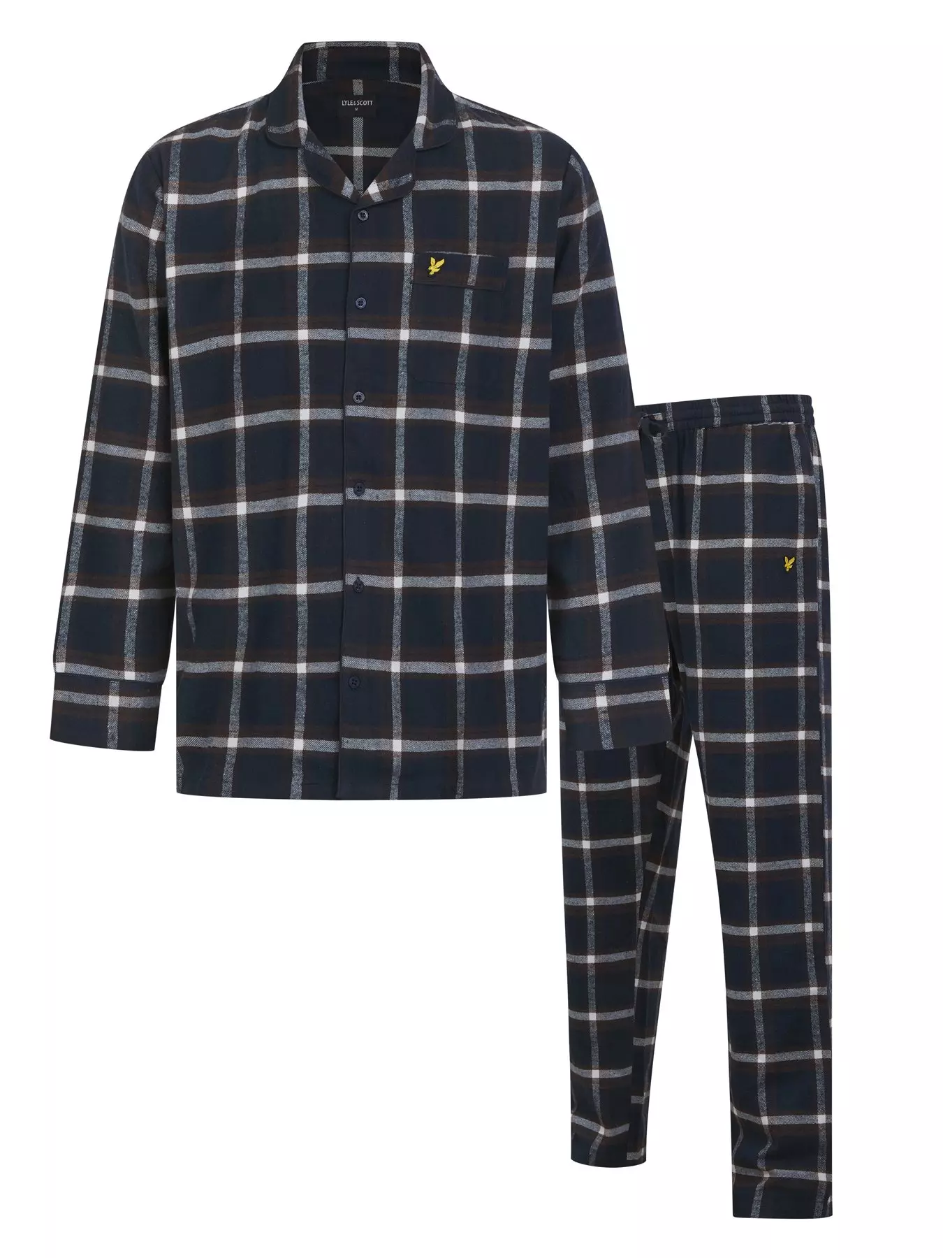Lyle and Scott Julian cotton long woven checked pyjama suit. Finished with a full button shirt and the classic embroidered eagle branding. Perfect for gifting or any occasion.- Material Content: 170-175 GSM 70% COTTON 30% POLYESTER 20X20s 60X64 COUNT (FRESH YARN) - SINGLE SIDE BRUSHED