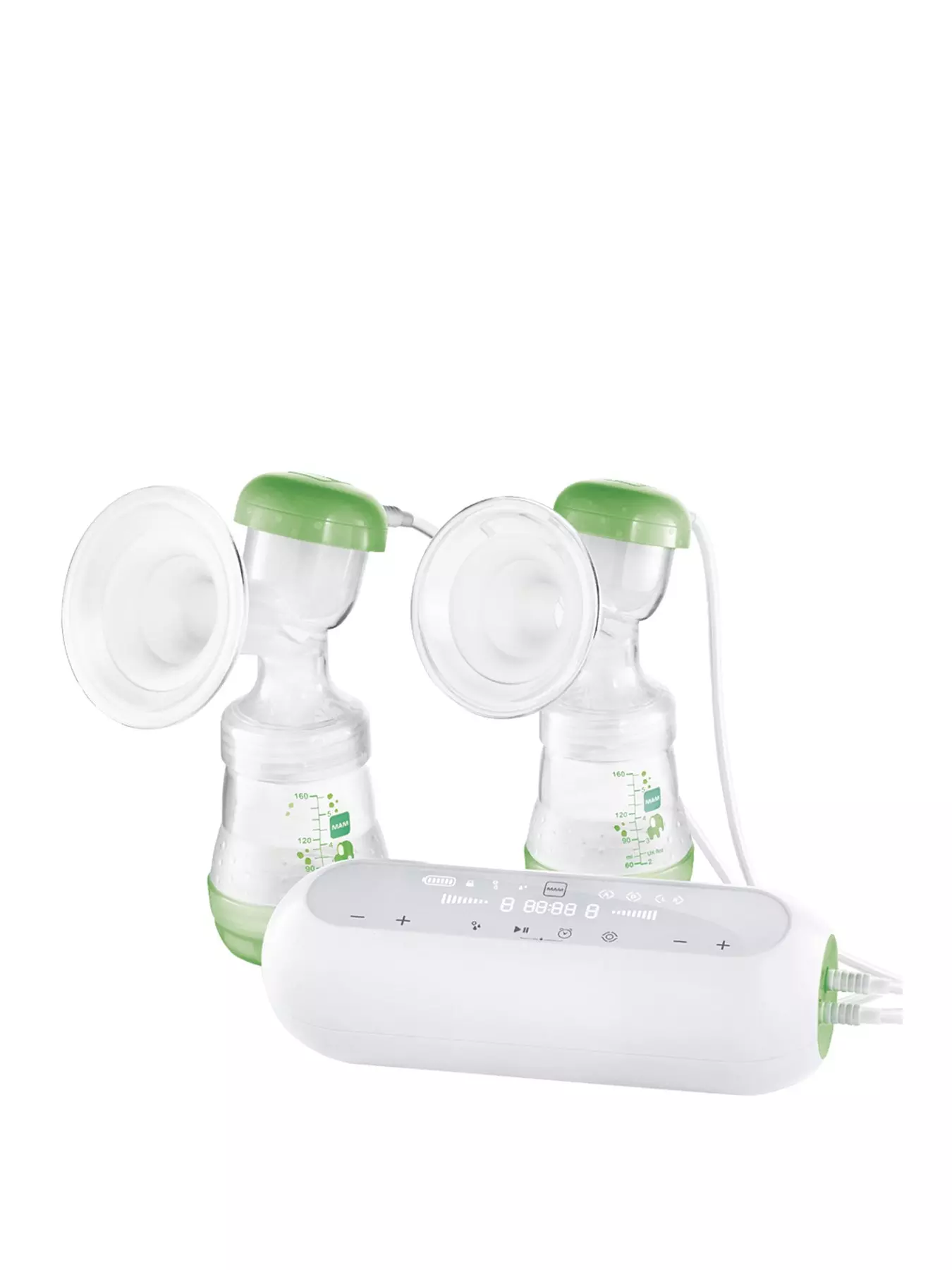 The new 2-in-1 double pump provides maximum comfort for mums by allowing them to individually adjust the pumping settings for each breast, including setting different suction strengths for each breast. The new pumping modes feature left or right only pumping, dual or alternate pumping in 30 second cycles which can help stimulate milk flow. The pump still offers 9 different suction strength and a rechargeable battery which lasts up to 3 hours - taking away the worries of having to find or be near a plug socket! (Compatible with all MAM bottles).- Accessory List: 2x Breast Pump 2in1 Electric attachment including Funnel Cover1x Rechargeable battery unit1x Breas