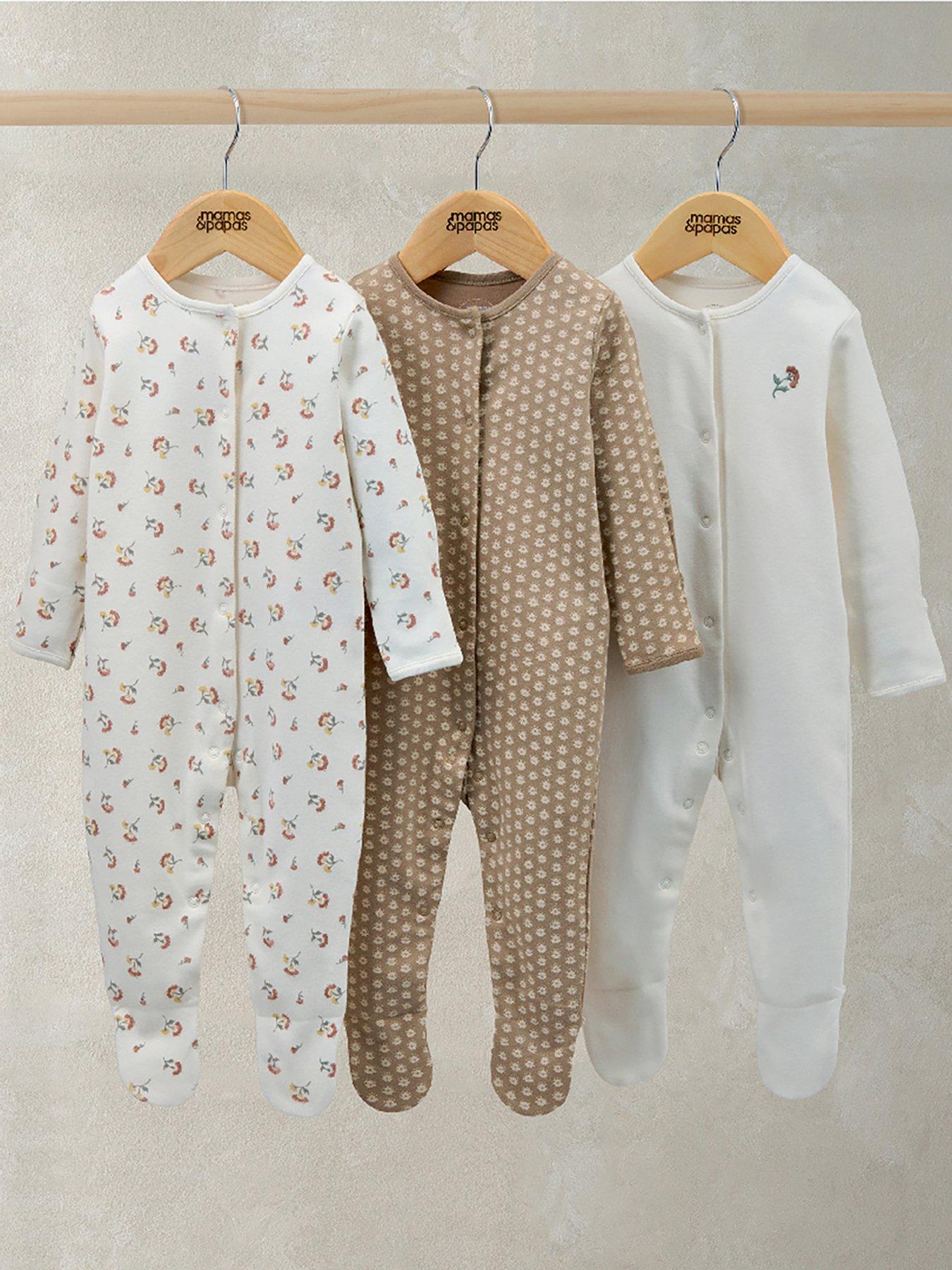 •  image of mamas-papas-baby-girls-3-pack-floral-woodblock-sleepsuits-multi