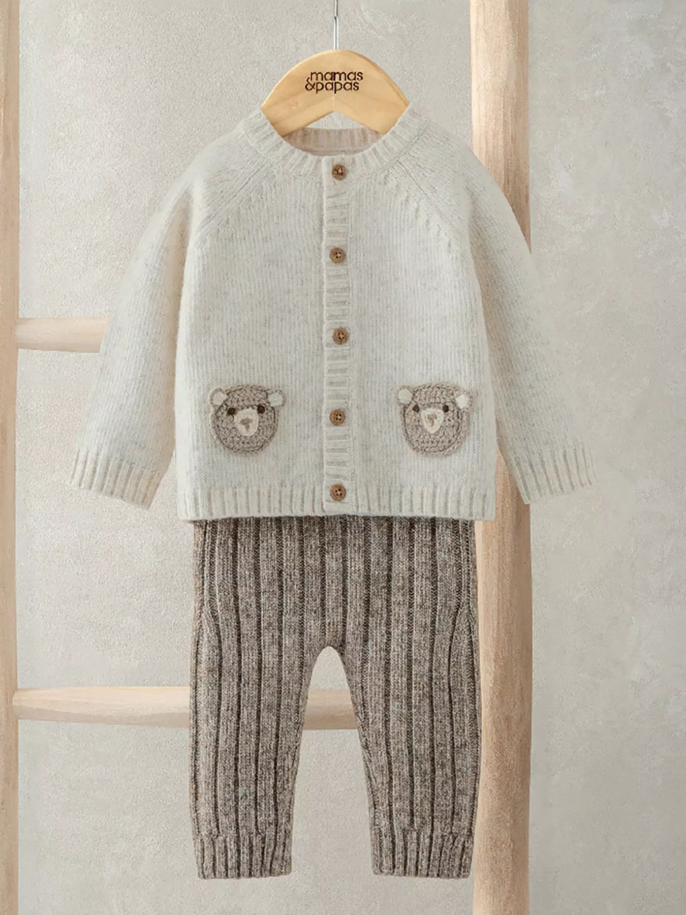 Mamas & PapasBaby Unisex 2 Piece Bear Knitted Cardigan & Leggings Set - Brown