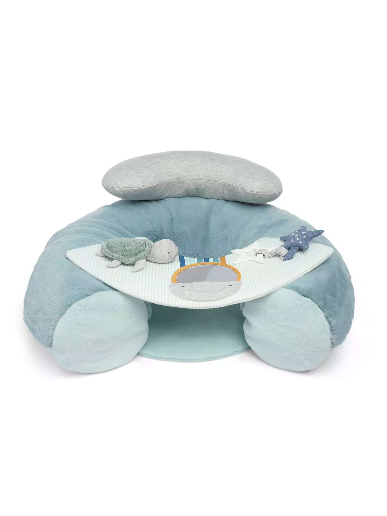 Your little one can enjoy independent playtimes with this Sit & Play interactive Seat.An inflatable seat with raised back keeps your child secure and supported as they indulge in some sensory development and play. With an easily removable play panel that's full of interactive features, including a crinkle texture, a rattle, and a mirror so they can see themselves, as well as sweet turtle soft toys and a handy teether.