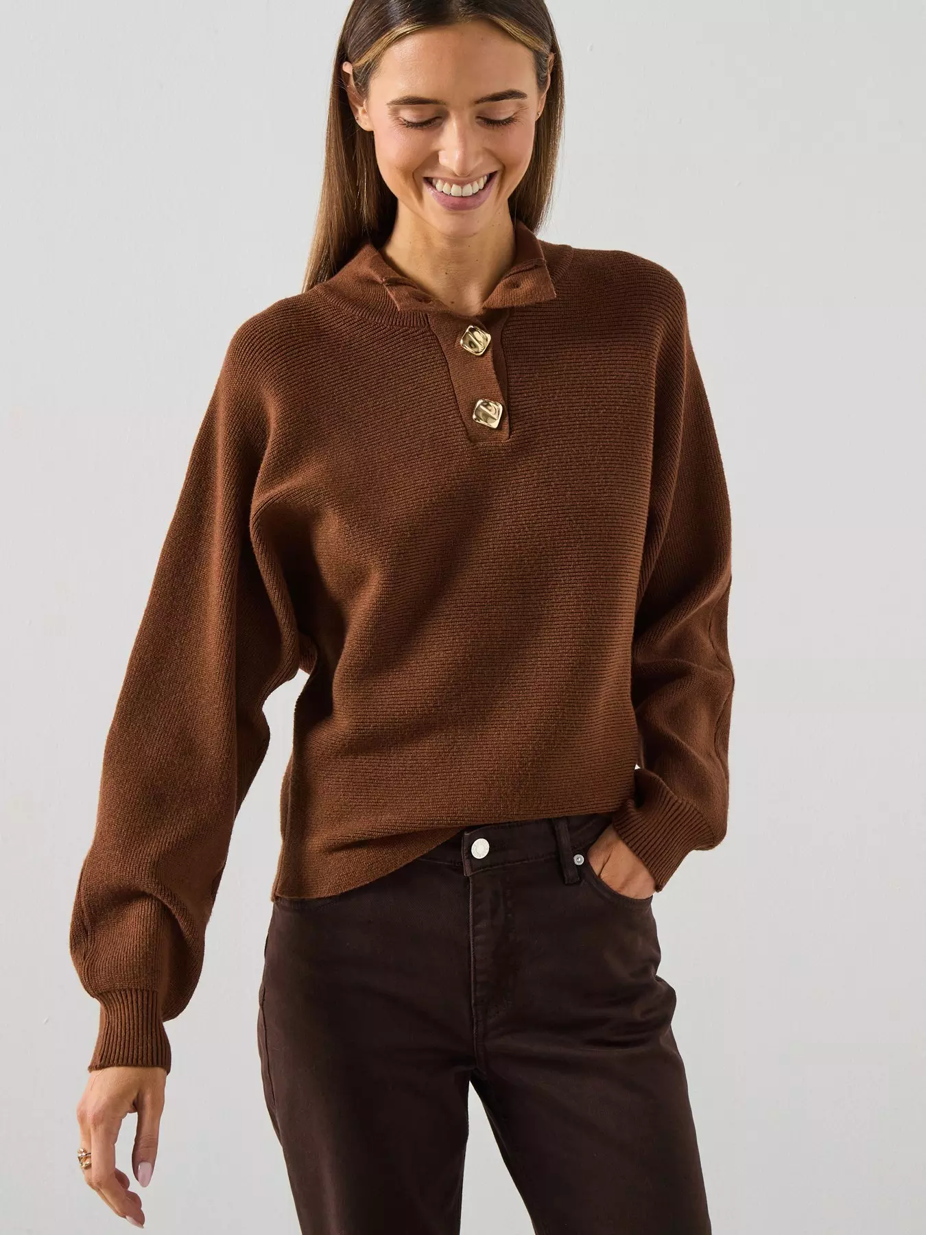 MangoTurtleneck Jumper With Jewel Buttons - Brown