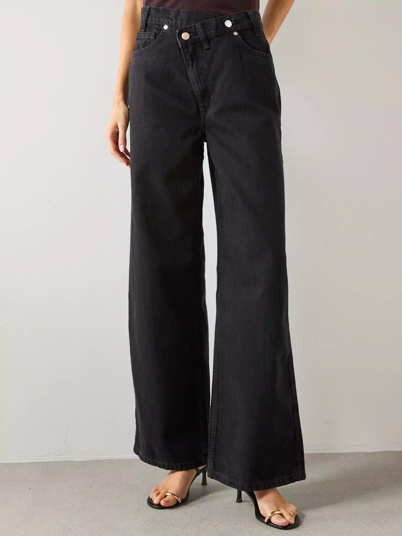 MangoWide Leg Jeans with Crossover Waistband - Black