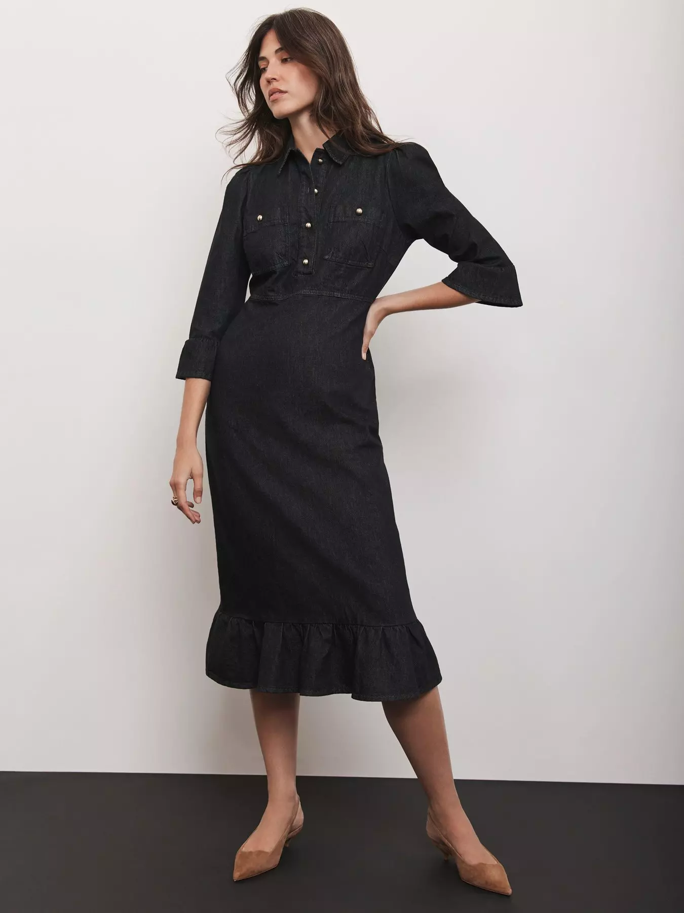 - Frill Denim Midi Dress by Mint Velvet