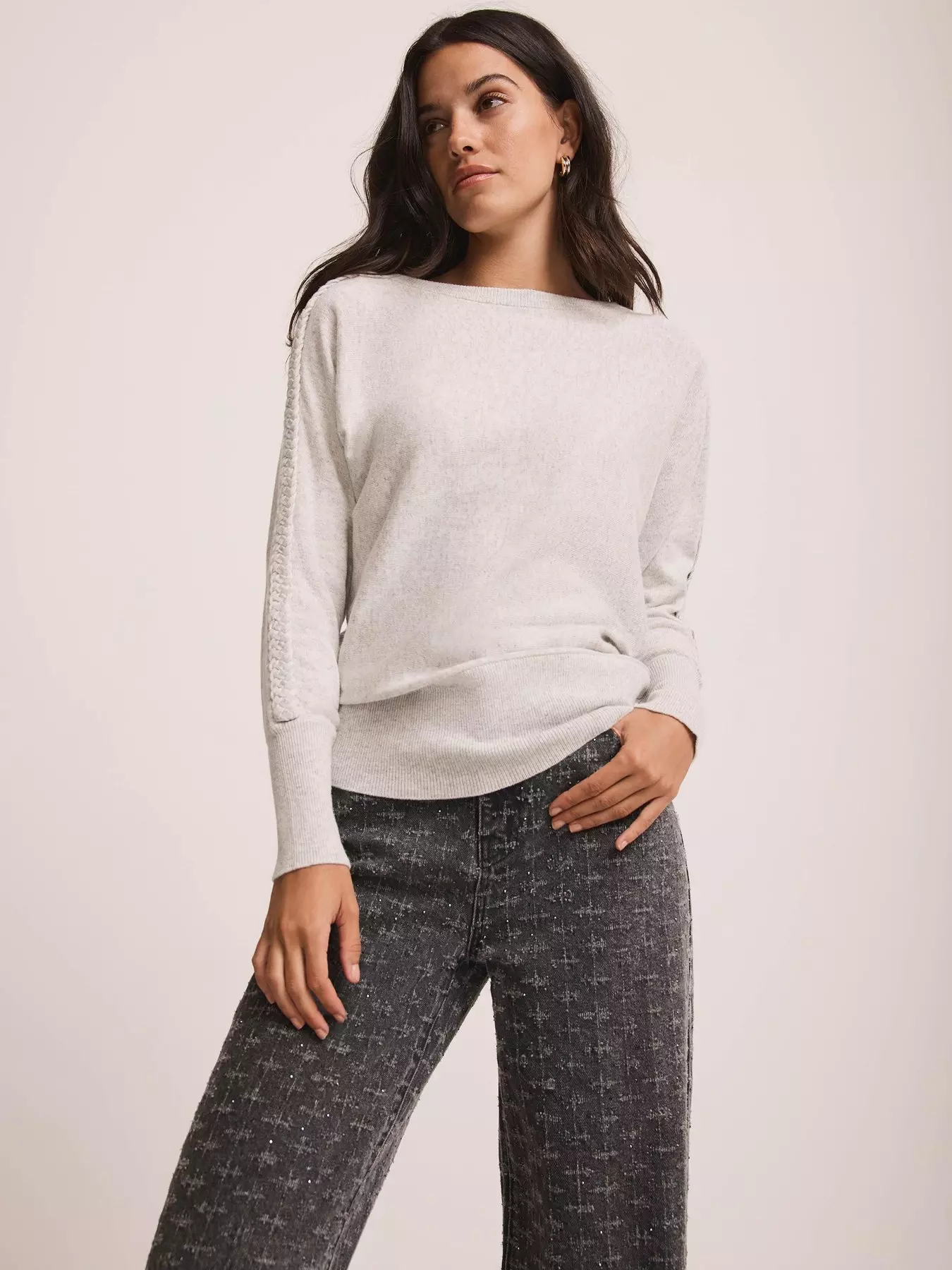Mint VelvetPlait Detail Batwing Jumper - Grey