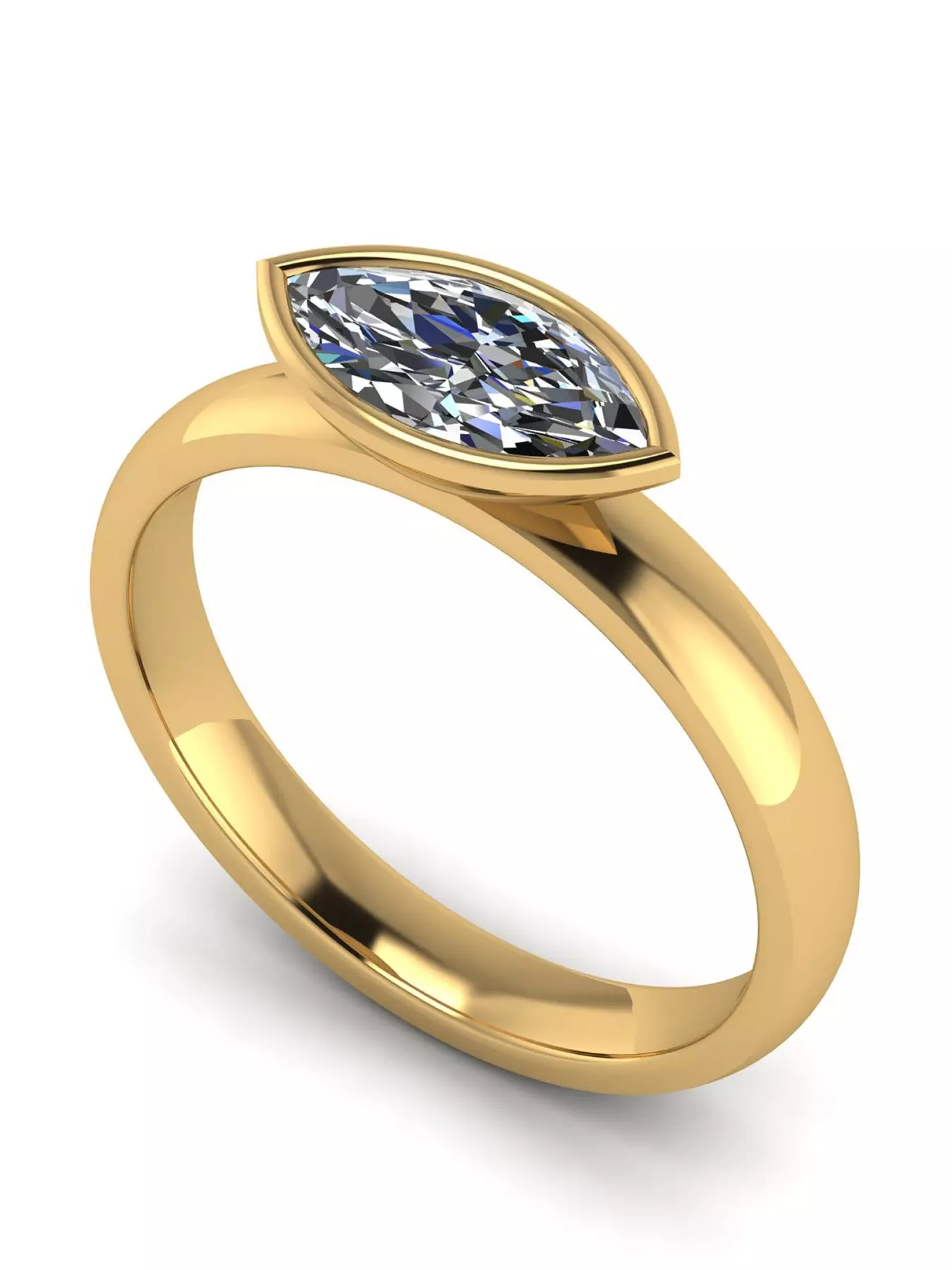 - 9Ct 1Ct Rub Set Marquise Wed Fit Solitaire Ring by Moissanite