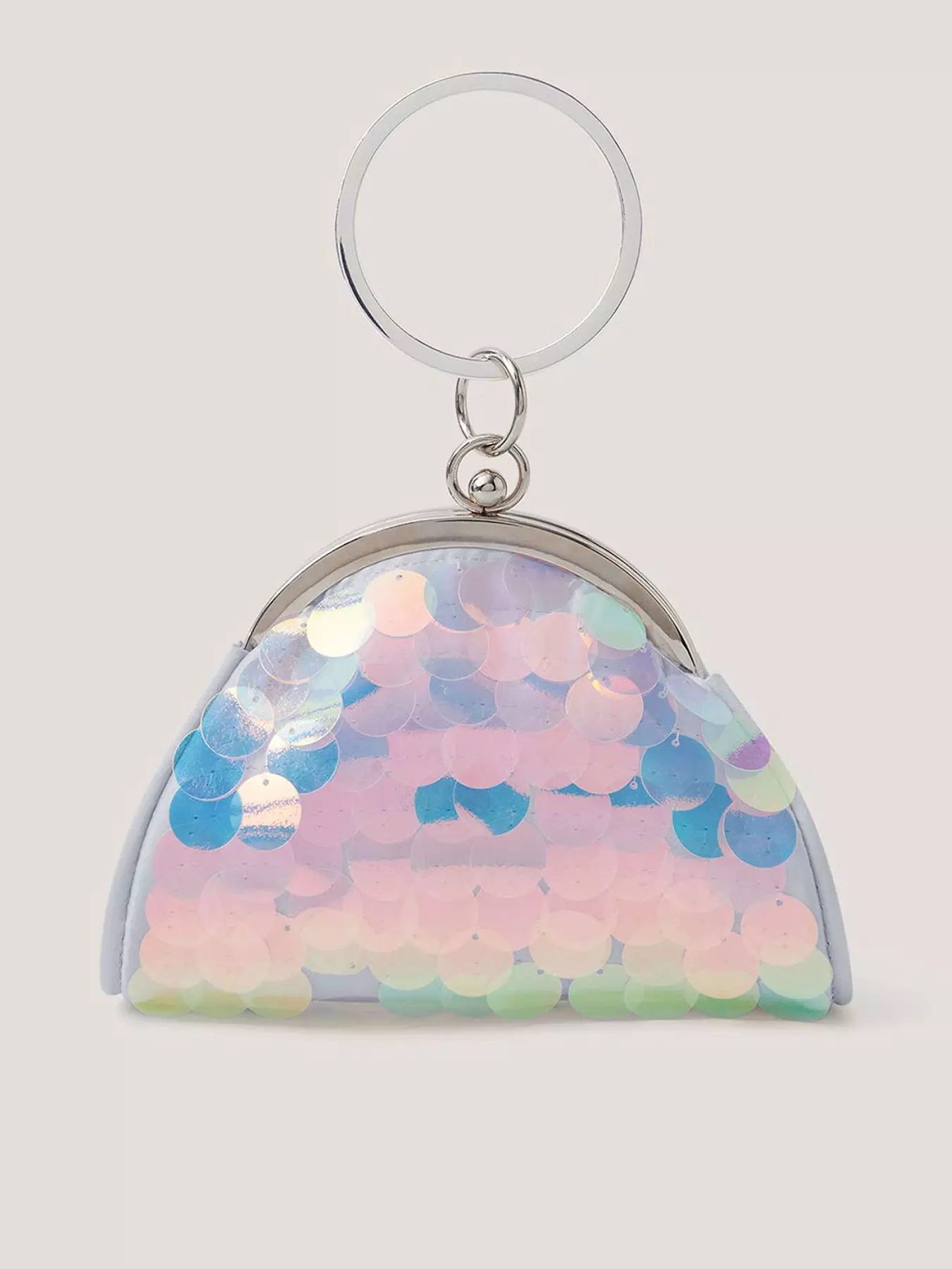 Time to dazzle! The ultimate party accessory that'll make every outfit pop. This bag is designed with iridescent sequins covering the clip frame satin profile. Finished with a bangle-style handle for them to slip on their wrist. Warning! Choking Hazard-Small parts. Not suitable for children under 3 years old.- Material Content: Composite: Iron 20%, Polyester 70%, Polyethylene Terephthalate (PET) 10%