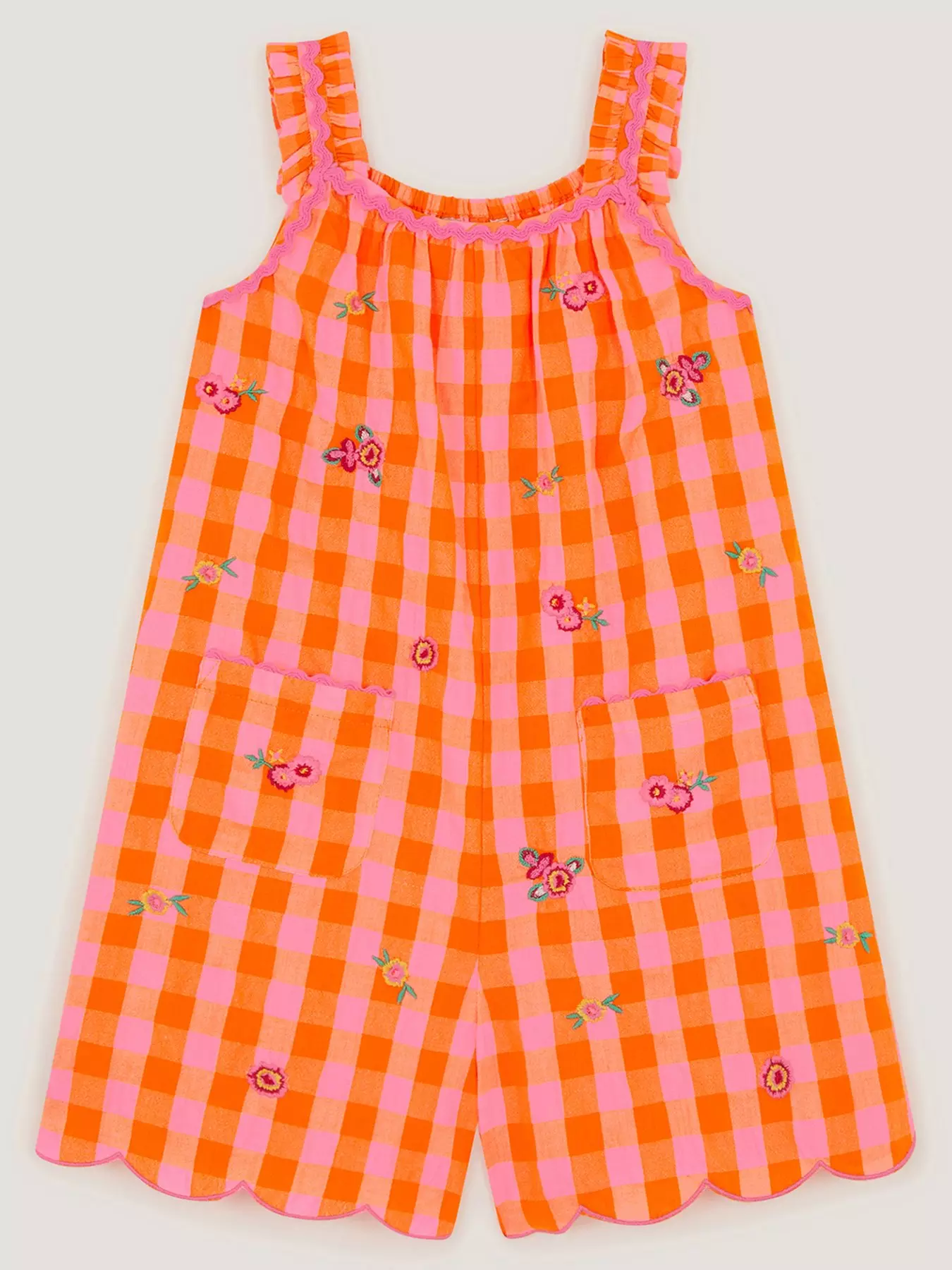 MonsoonGirls Gingham Embroidered Playsuit - Orange