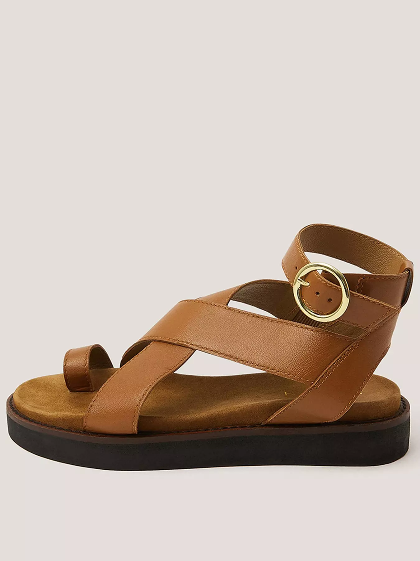 Monsoon Ivy Toe Strap Crossover Leather Sandals Tan