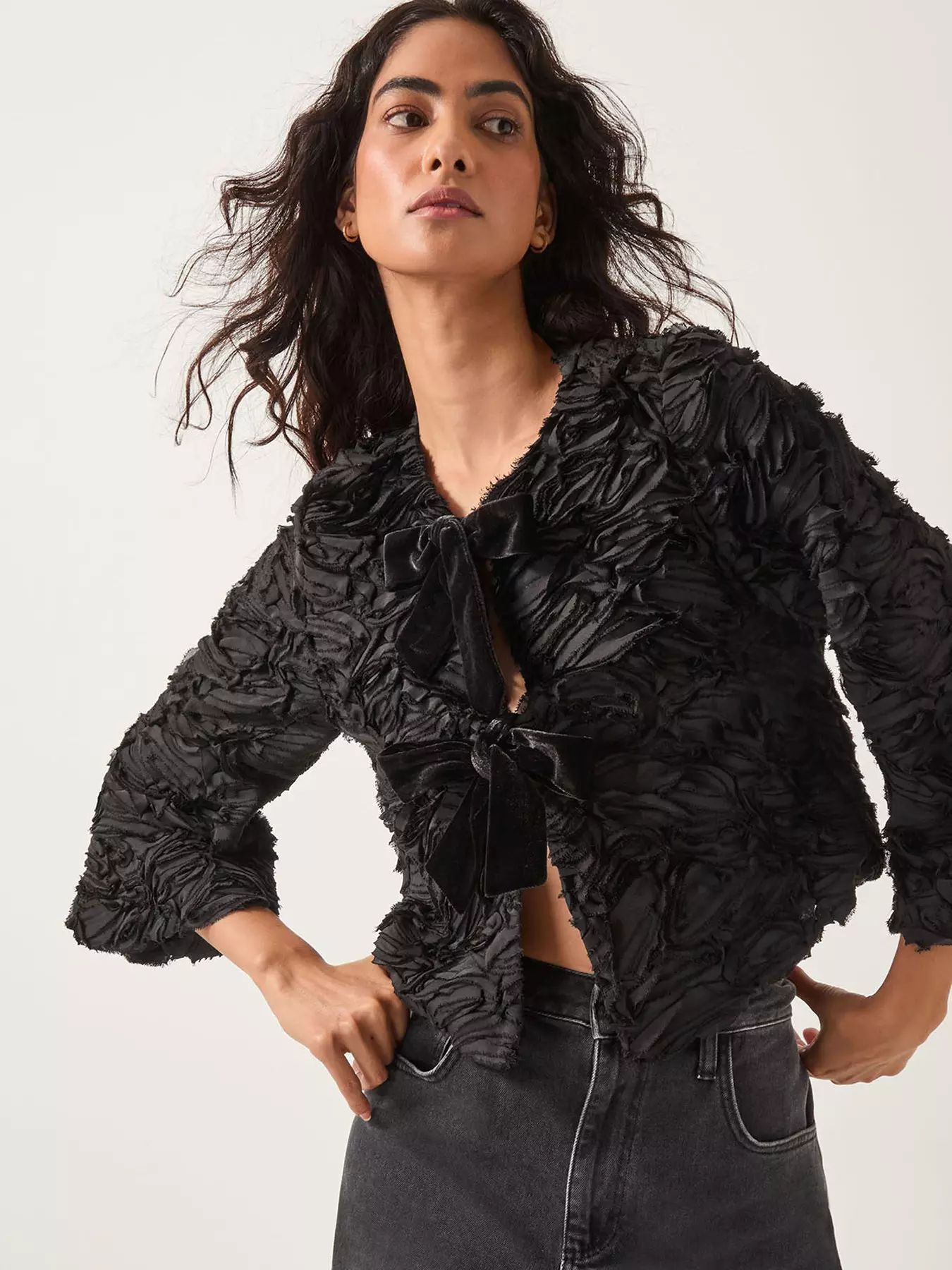 - Tia Tie-Front Textured Jersey Jacket by Monsoon
