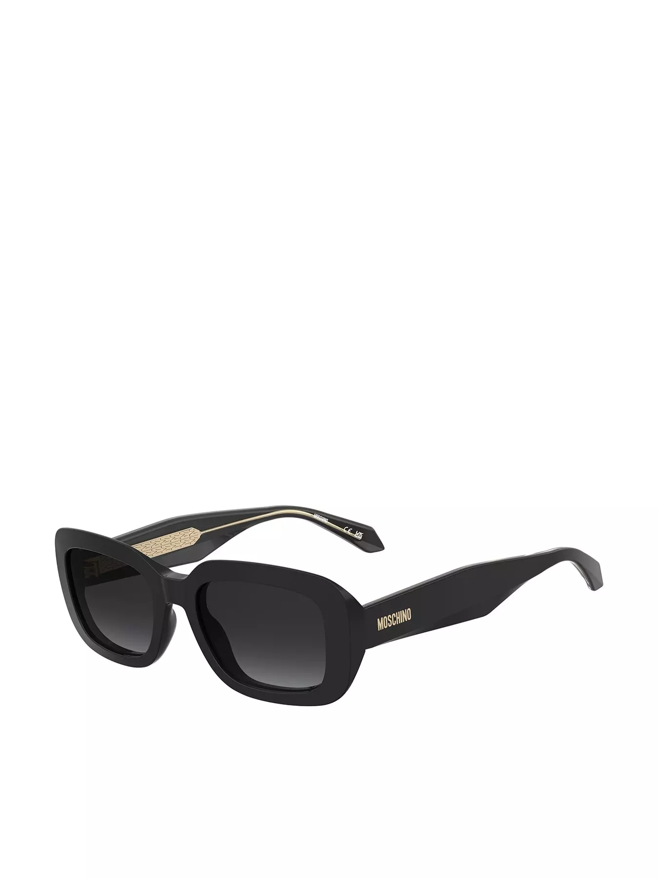 Sharpen your everyday style with Moschino's Bevelled eyewear collection, where fashion-forward silhouettes are elevated with striking angular temples. Balancing architectural edge with effortless wearability, these sun and optical frames span sleek black, clear hues, and sophisticated Havana tones. A subtle logo on the outer temple gives way to metal cores, stealing the spotlight with a signature 'M' pattern.- Material Content: ACETATE FRAMES