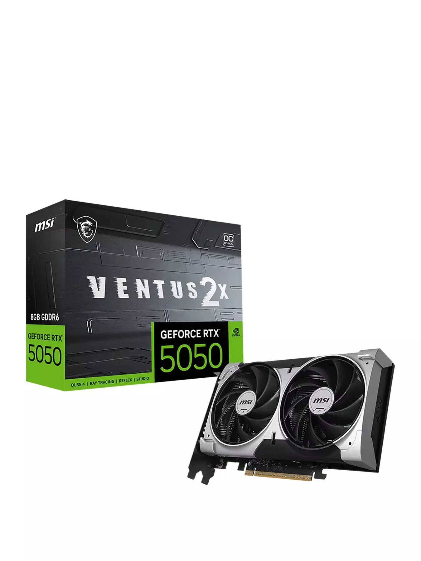 VENTUS focuses on the essentials and is ready to tackle any challenge. With MSI's GeForce RTX 5050 8G VENTUS 2X OC graphics card, you get a gaming workhorse and advanced AI performance, all powered by NVIDIA's latest Blackwell architecture. Equipped with 2560 CUDA cores and 8GB of high-speed GDDR6 memory, this GPU delivers smooth frame rates and stunning visuals for today's most demanding titles. The dual-fan VENTUS 2X cooling system complete with Torx fan 5.0 technology ensures efficient heat dissipation and quiet operation, while the compact design offers broad compatibility with a wide range of PC cases. Supporting advanced features like real-time ray tracing, DLSS 4, and PCIe 5.0, the RTX 5050 8G VENTUS 2X OC is the ideal choice for gamers and creators looking for budget-friendly, yet future-proof graphics performance.- Depth: 41 MM