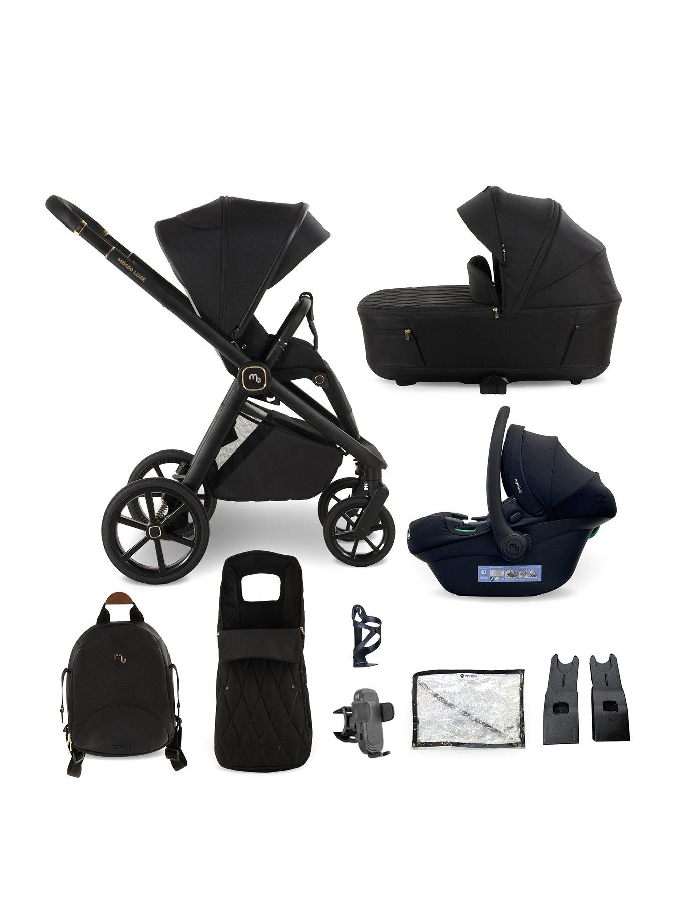 My Babiie MB450 LUXE 3-in-1 Travel System with R129 Car Seat - BlackEffortless function meets modern style-the MB450 LUXE is your all-in-one companion for life on the move.Everything you need, all in one handy, coordinating collection: CHASSIS - Sleek, aluminium frame CARRYCOT - Suitable from birth to 6 months SEAT UNIT - Suitable from birth to 22kg i-SIZE INFANT CARRIER & ADAPTERS - Suitable from birth to 76cm ACCESSORIES - Premium quilted footmuff, matching changing bag, attachable phone holder, and raincover OVERNIGHT SLEEP CERTIFIED CARRYCOT A memory foam mattress and cosy quilted footmuff make for a 5-star sleep experience. PANORAMIC VENTILATION Carrycot has a UPF50+ sun-protected canopy with panoramic ventilated panels allowing for optimal airflow, temperature regulation, and visual stimulation. i-SIZE INFANT CARRIER The i-Size Infant Carrier, tested to the latest R129 safety standards, includes a newborn inlay and attaches easily to the chassis using included adapters-perfect for seamless car-to-stroller transitions. SEAMLESS TRANSITIONS Effortlessly adapt to any situation. With built-in adapters and memory buttons on the carrycot, to parent and world facing options with the seat unit, the MB450 LUXE is a truly customisable luxury experience. SUPERIOR COMFORT Suitable from birth to 22kg-provides a fully adjustable ride, with lie-flat recline, extendable leg rest, and a padded head support insert for added comfort and stability. SMOOTH RIDES XL puncture-proof all-terrain wheels, all-round suspension, and ergonomic features like a height-adjustable handle and large underseat basket. LUXURY ON WHEELS The magnetic buckle harness, 360° swivel bumper bar, and one-hand memory buttons make daily use effortless. Compact fold, oversized UPF50+ canopy, and sleek finish, the MB450 Luxe combines luxury, safety, and convenience.