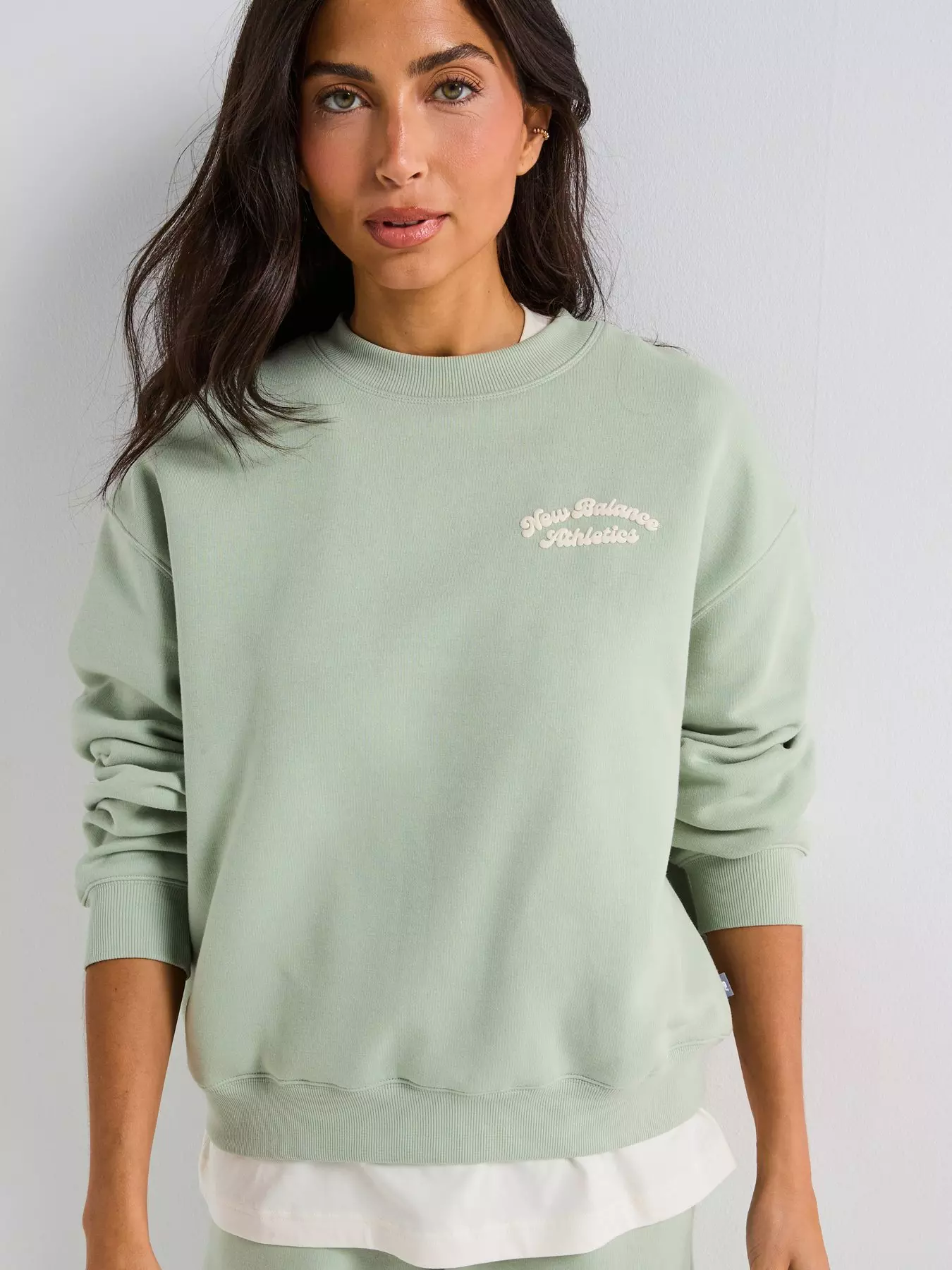 New BalanceWomens Linear Heritage Fleece Crew Sweater - Green