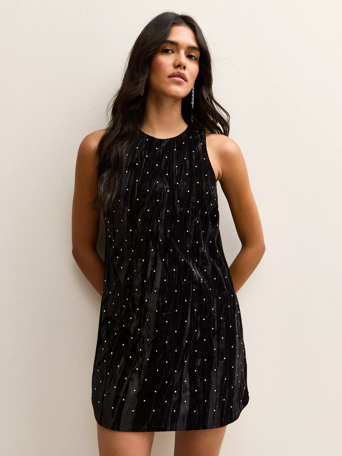 - Black Diamante Embellished Velvet Mini Dress by New Look