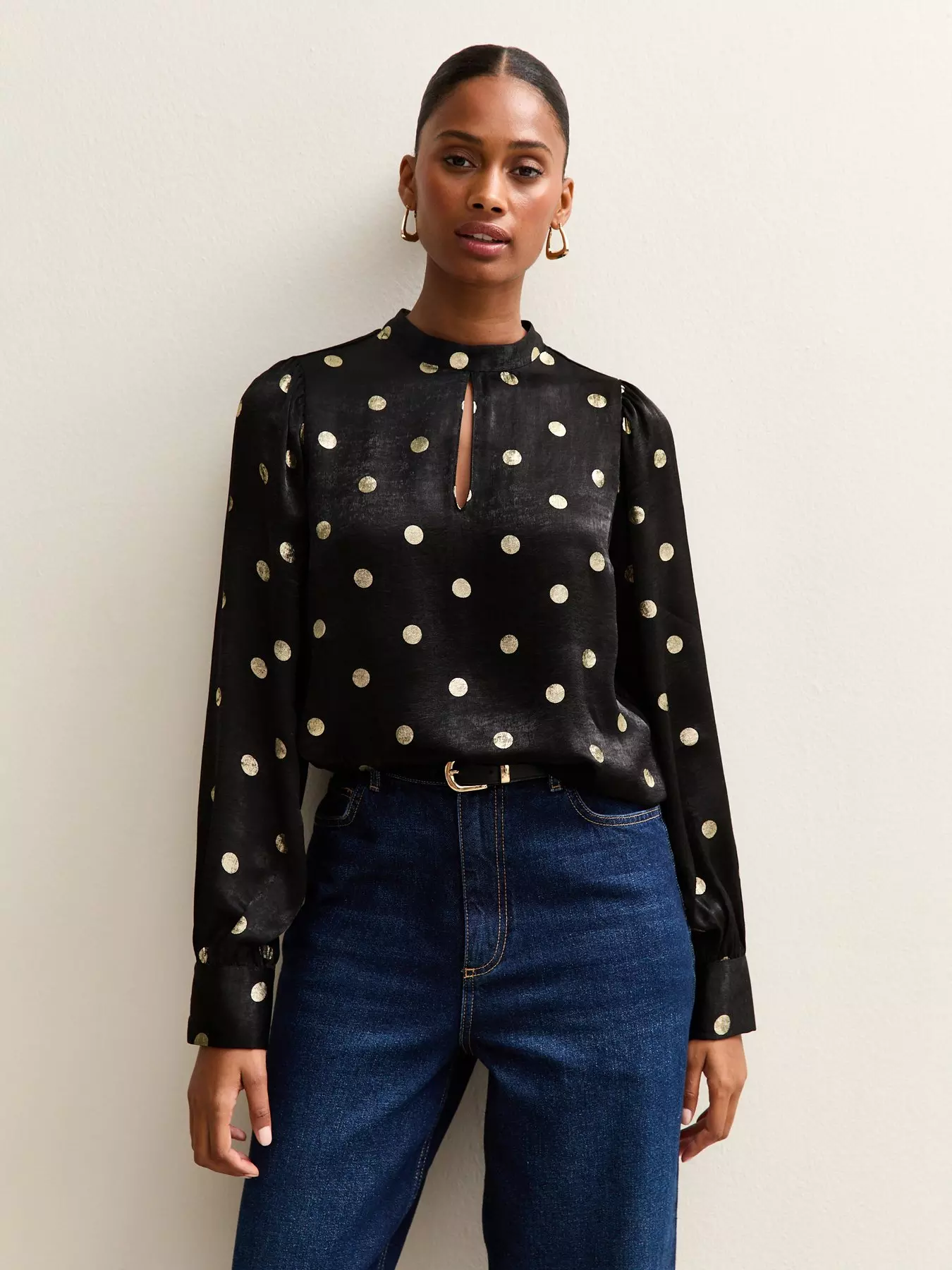 New Look Foiled Polka Dot Keyhole Neck Blouse