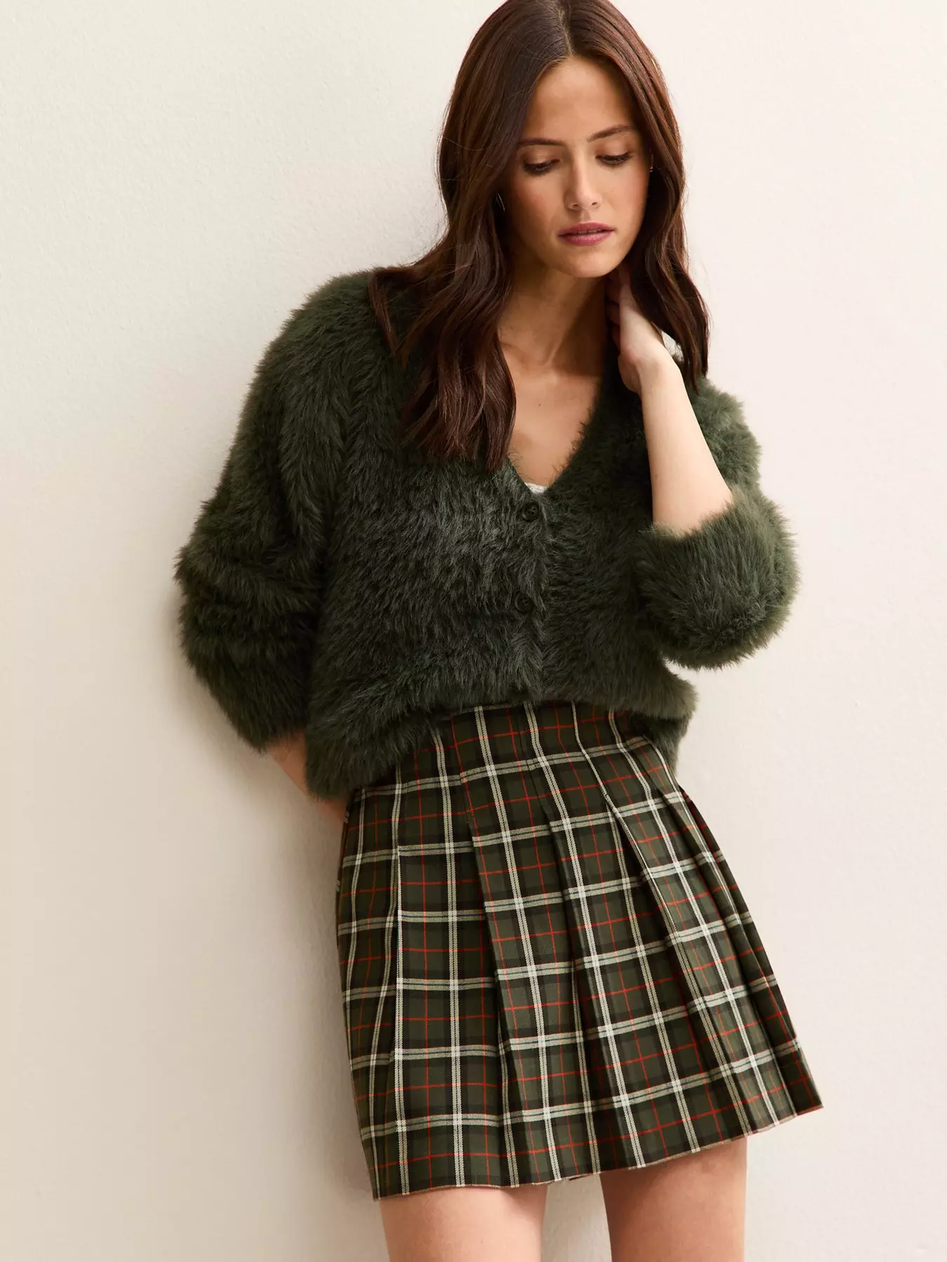 - Check Pattern Knife Pleat Mini Skirt by New Look
