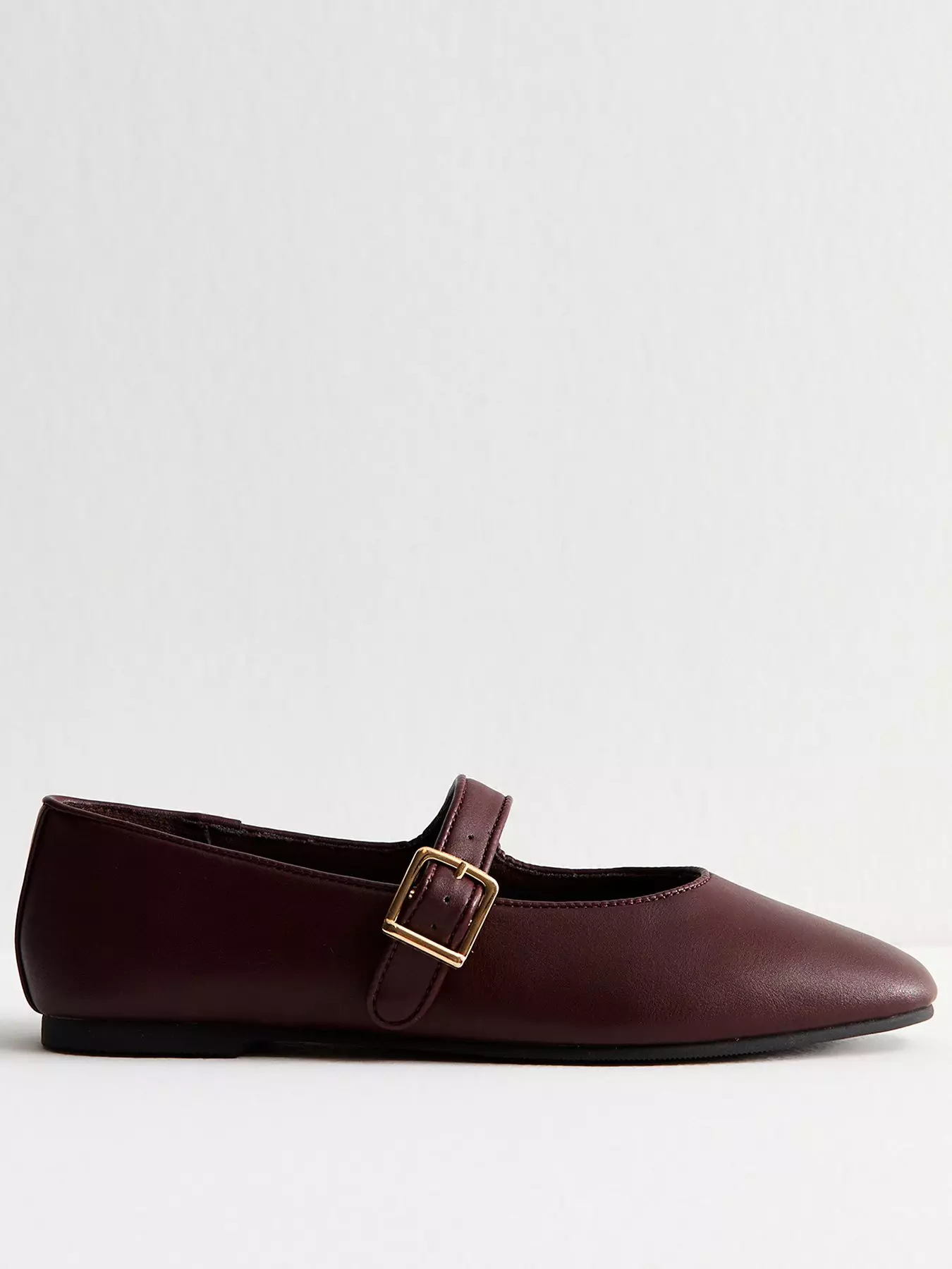 New LookDark Burgundy Faux Leather High Vamp Mary Janes Ballerina Flats