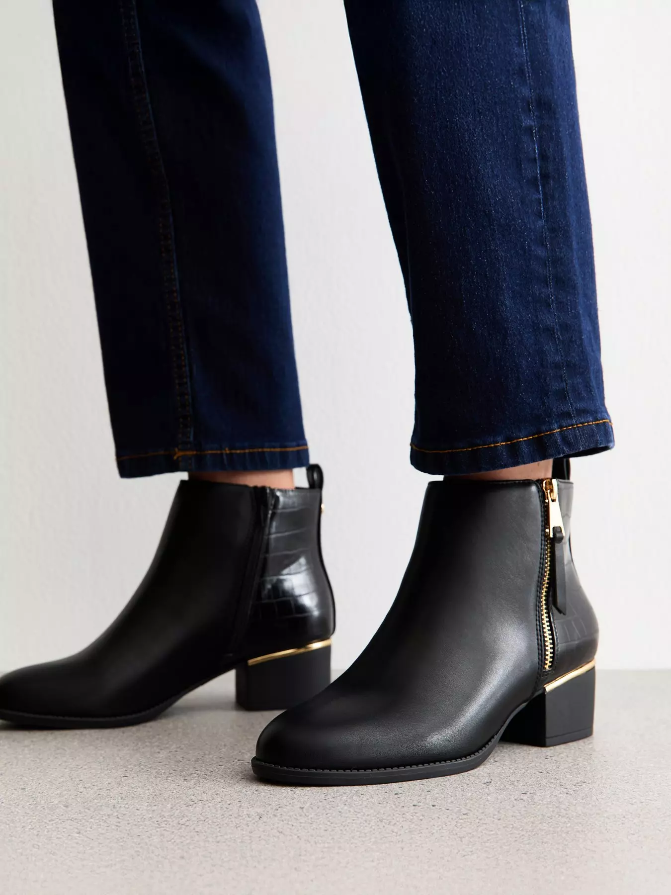 New LookFaux Leather Block Heel Ankle Boots- Black