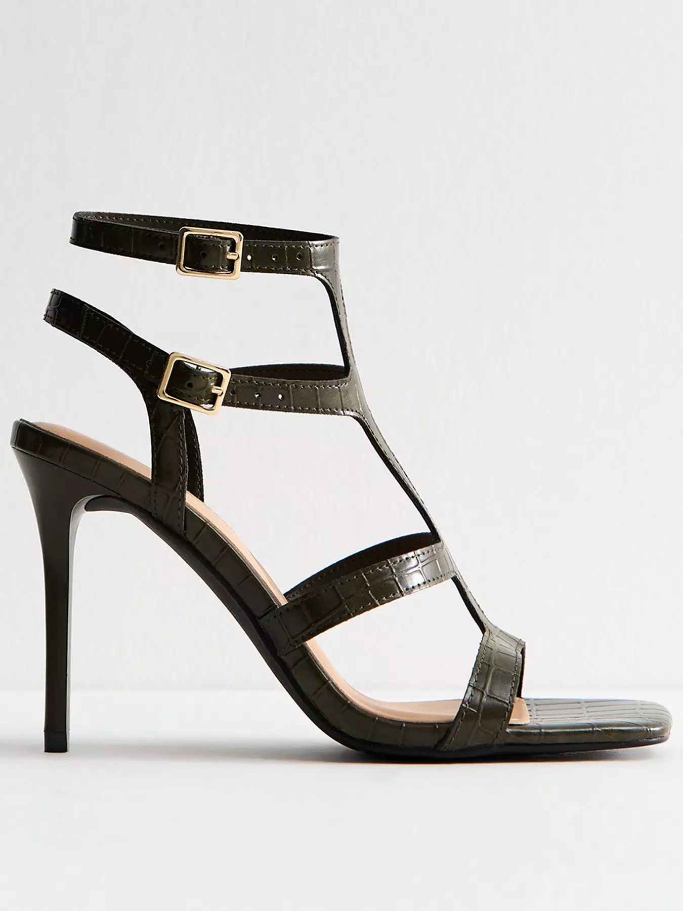 - Gladiator Strap Stiletto Heel Sandals - Dark Green by New Look