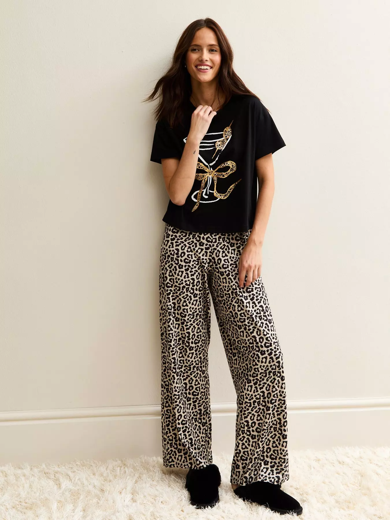 New LookLeopard Print Martini Glass Pyjama Set - Black
