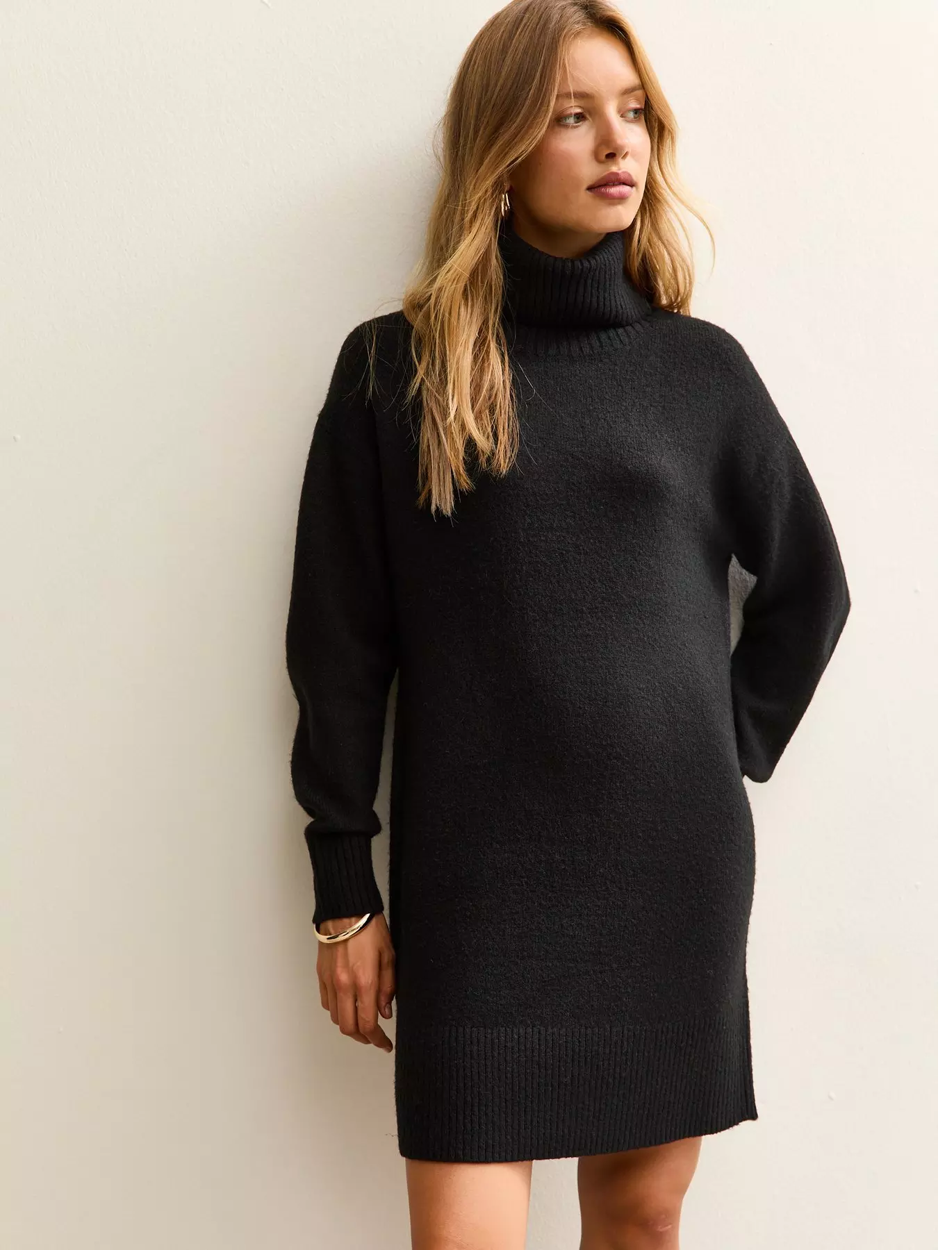 New LookMidweight Knit Roll Neck Mini Dress - Black