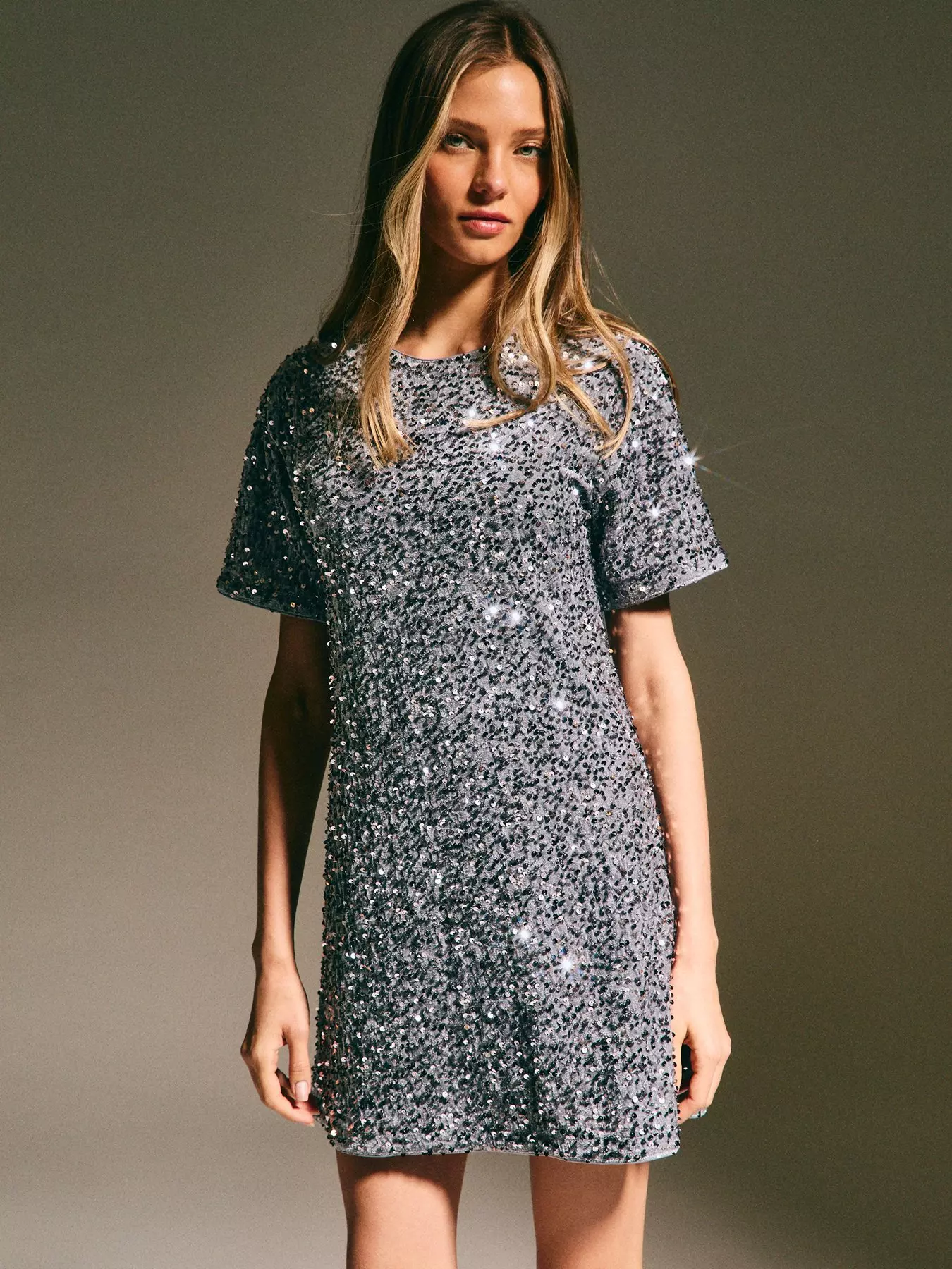 - Go Velvet Sequin T-Shirt Dress by New Look