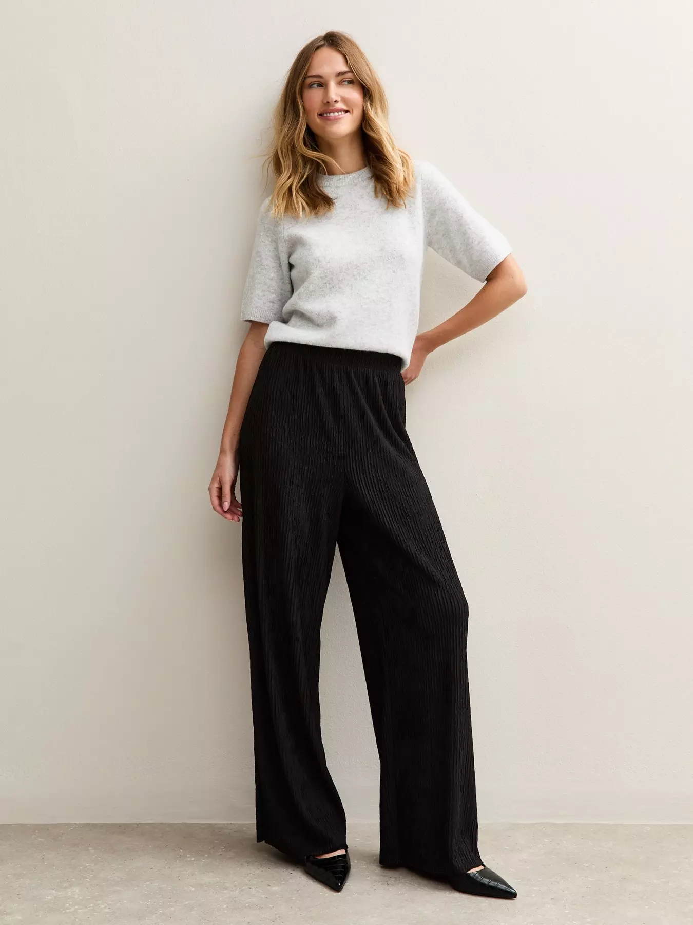 - Textured Jersey Wide Leg Trousers by New Look