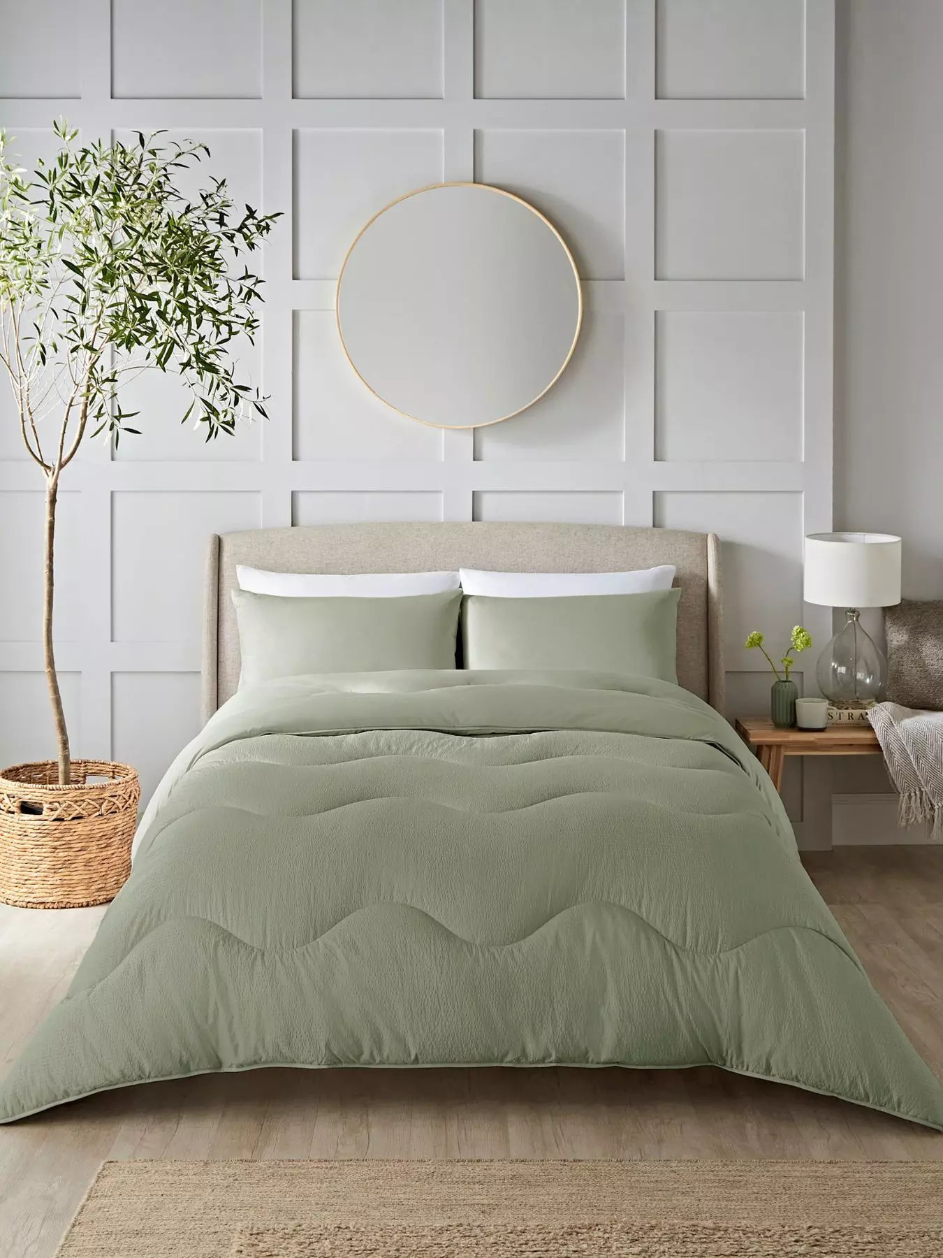 Night LarkSeersucker Bound 4.5 Tog Coverless Duvet Set - Olive
