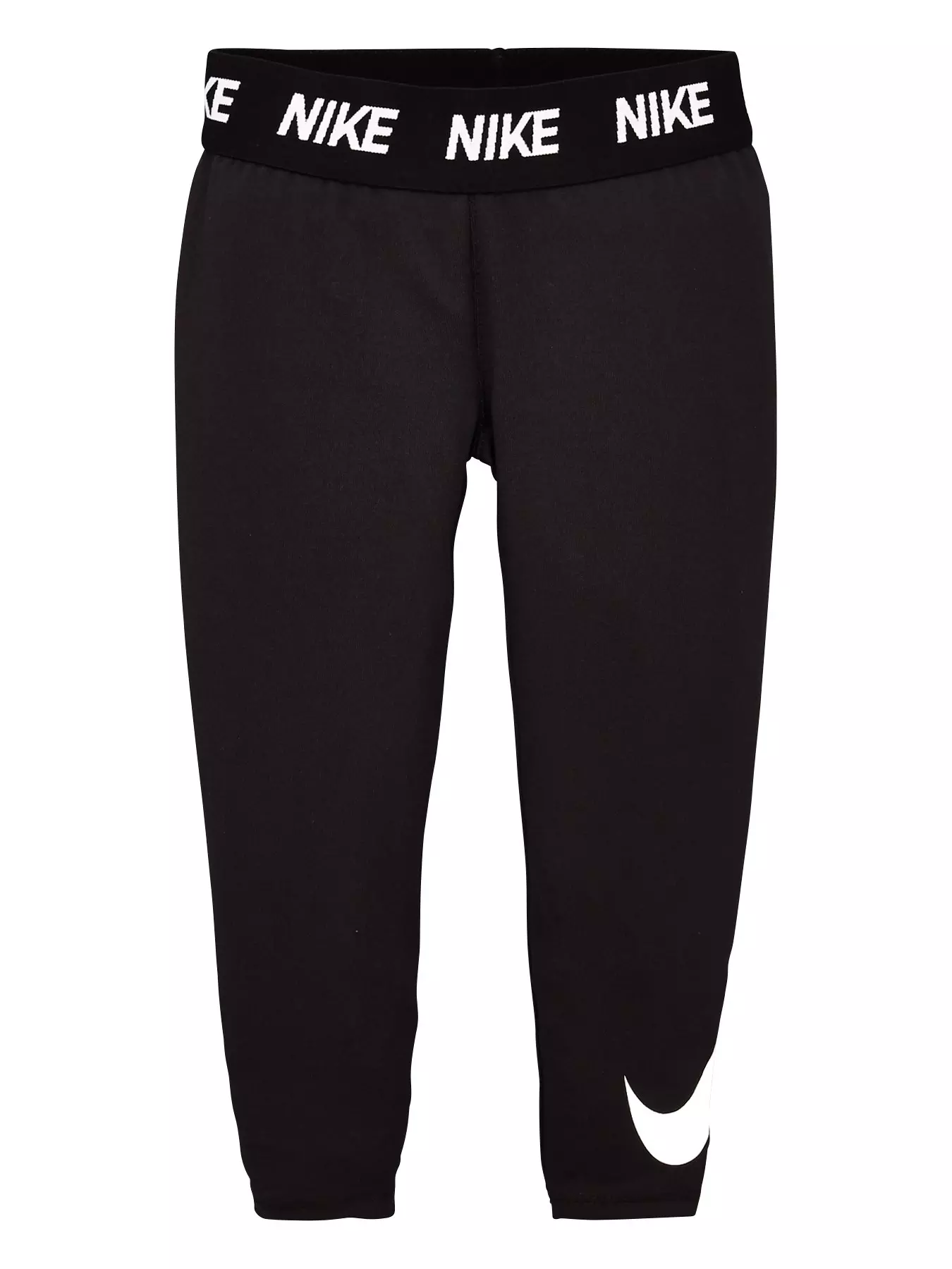 - Take training sessions up a level with these Nike leggings. In classic black, these Dri Fit leggings will keep them cool and comfortable during any activity. White Nike Swoosh branding and a Nike branded waistband complete the sporty look!