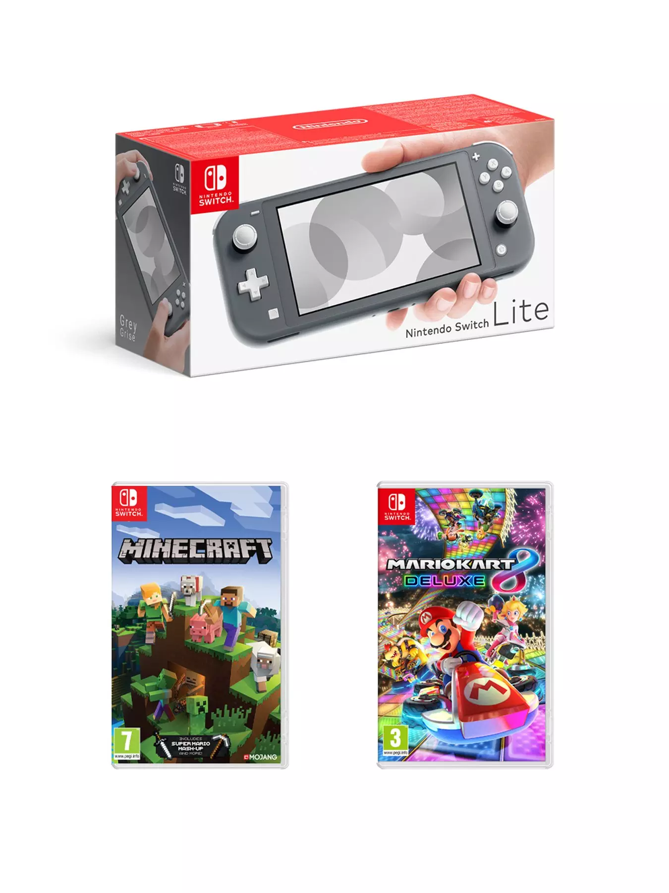 Nintendo Switch Lite Console with Minecraft & Mario Kart 8 - gaming fun you can take anywhere.