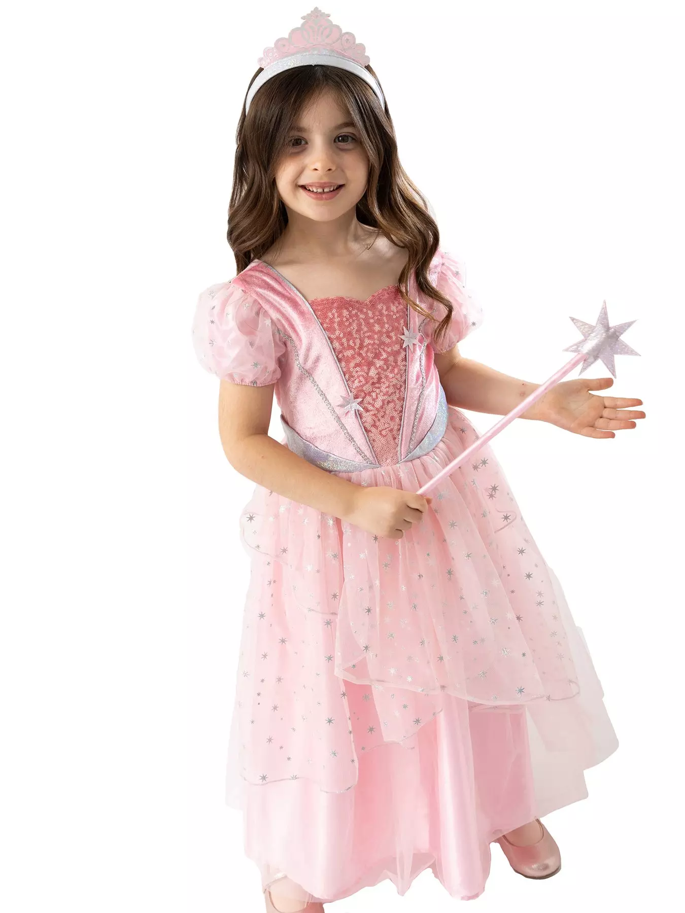 Transform your little one into a magical fairy princess with our enchanting Pink Good Fairy Dress set -Complete with a sparkling tiara and glittery wand!