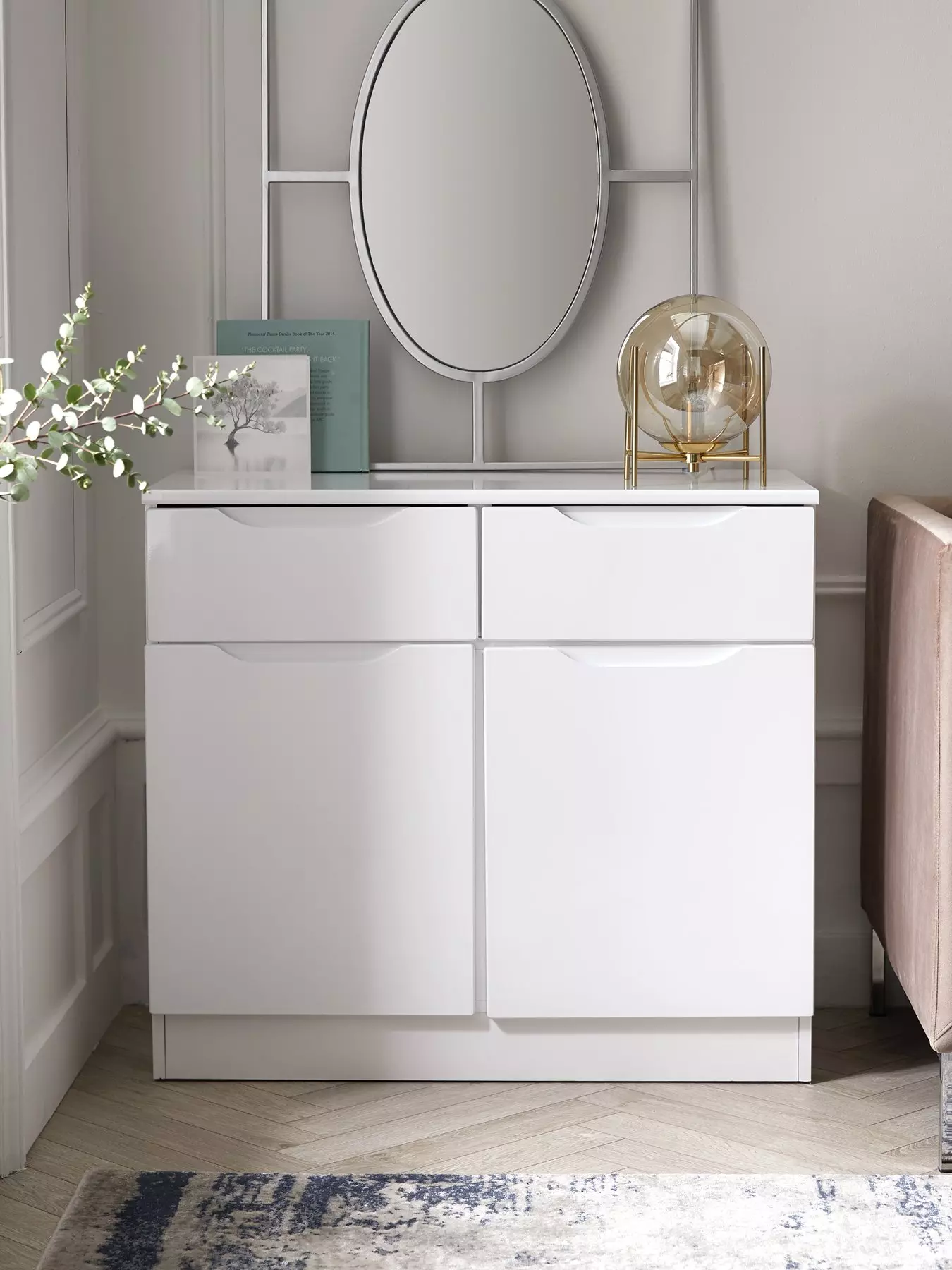 E.A.N: 5 0 6 0 4 2 5 6 9 1 2 6 4One Call Bilbao Ready Assembled 2 Door 2 Drawer Compact High Gloss Sideboard in White - 84.2 cm wide