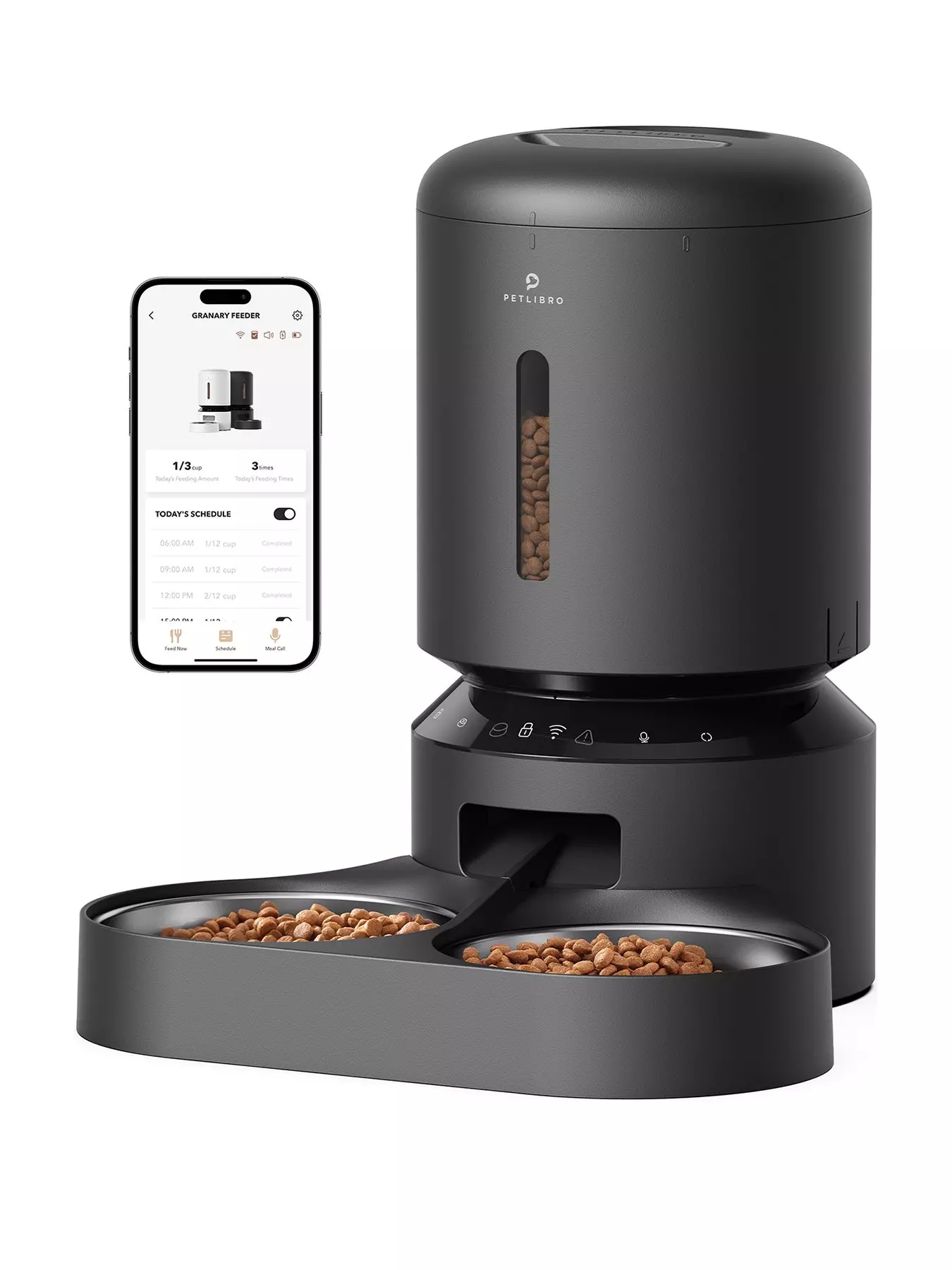 Dual Granary Wi-Fi automatic feeder from Petlibro: Program up to 10 meals or snacks a day with this app-connected feeder. It keeps you informed with meal logs, allowing you to track your pet's diet. With a large 5L capacity, it's suitable for extended use, and its quadruple-sealed design ensures kibble freshness.Quadruple sealing: Designed for freshness, every component of the Granary feeder, from storage to distribution, is hermetically sealed to prevent moisture loss. This keeps feed fresh, delicious and protected from parasites and mold.