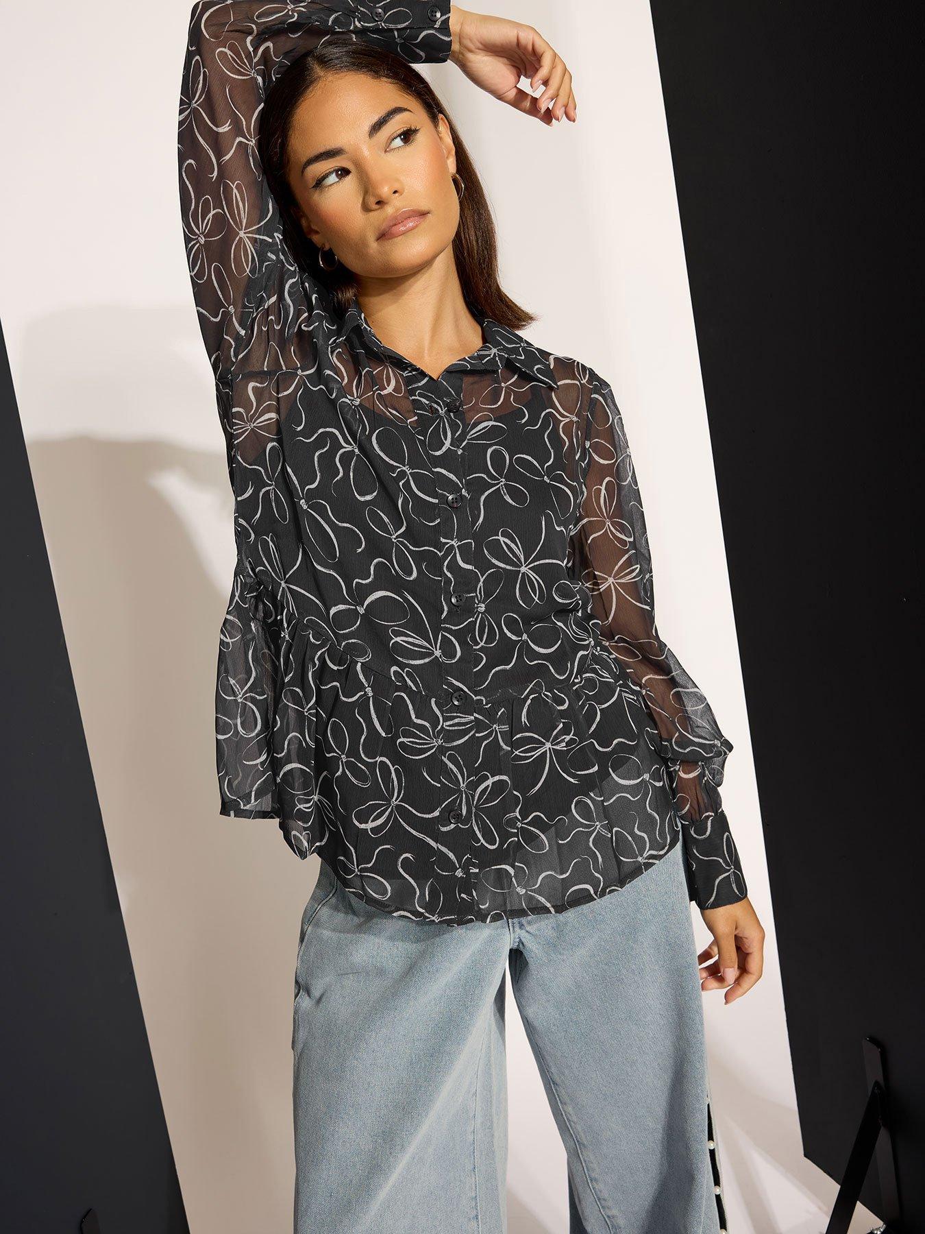 PixieGirl Petite Bow Peplum Chiffon Blouse - Black