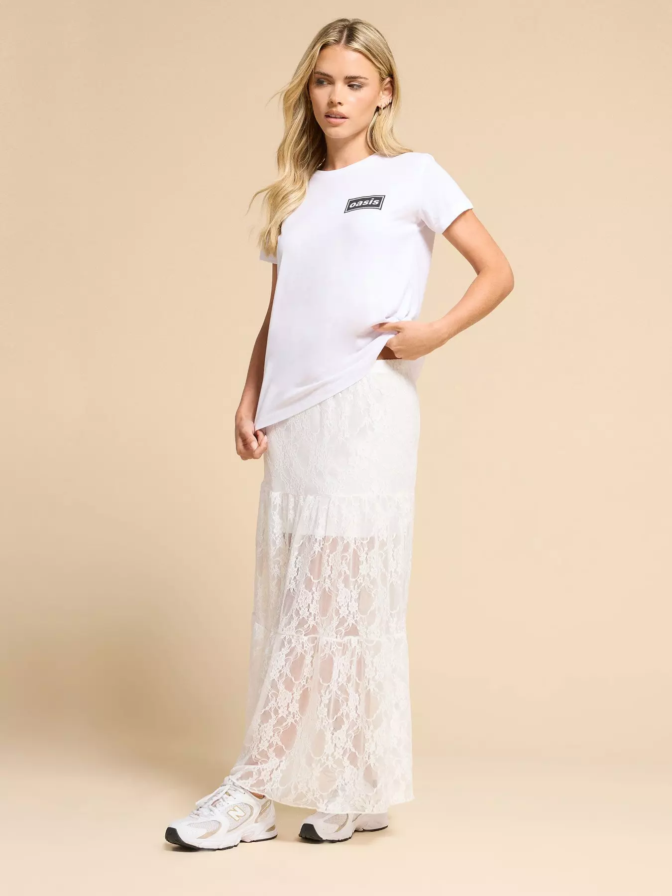 PixieGirlPetite Lace Lined Maxi Skirt - White