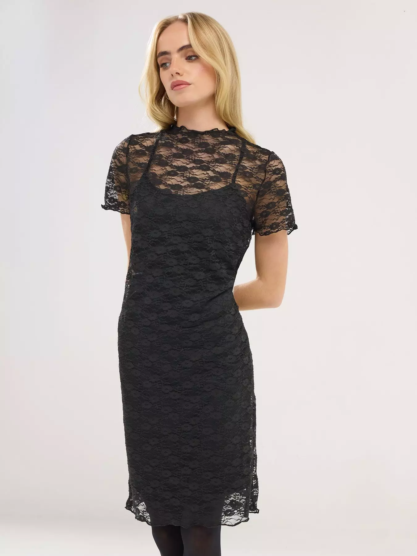 PixieGirlPetite Lace Short Sleeve Dress - Black