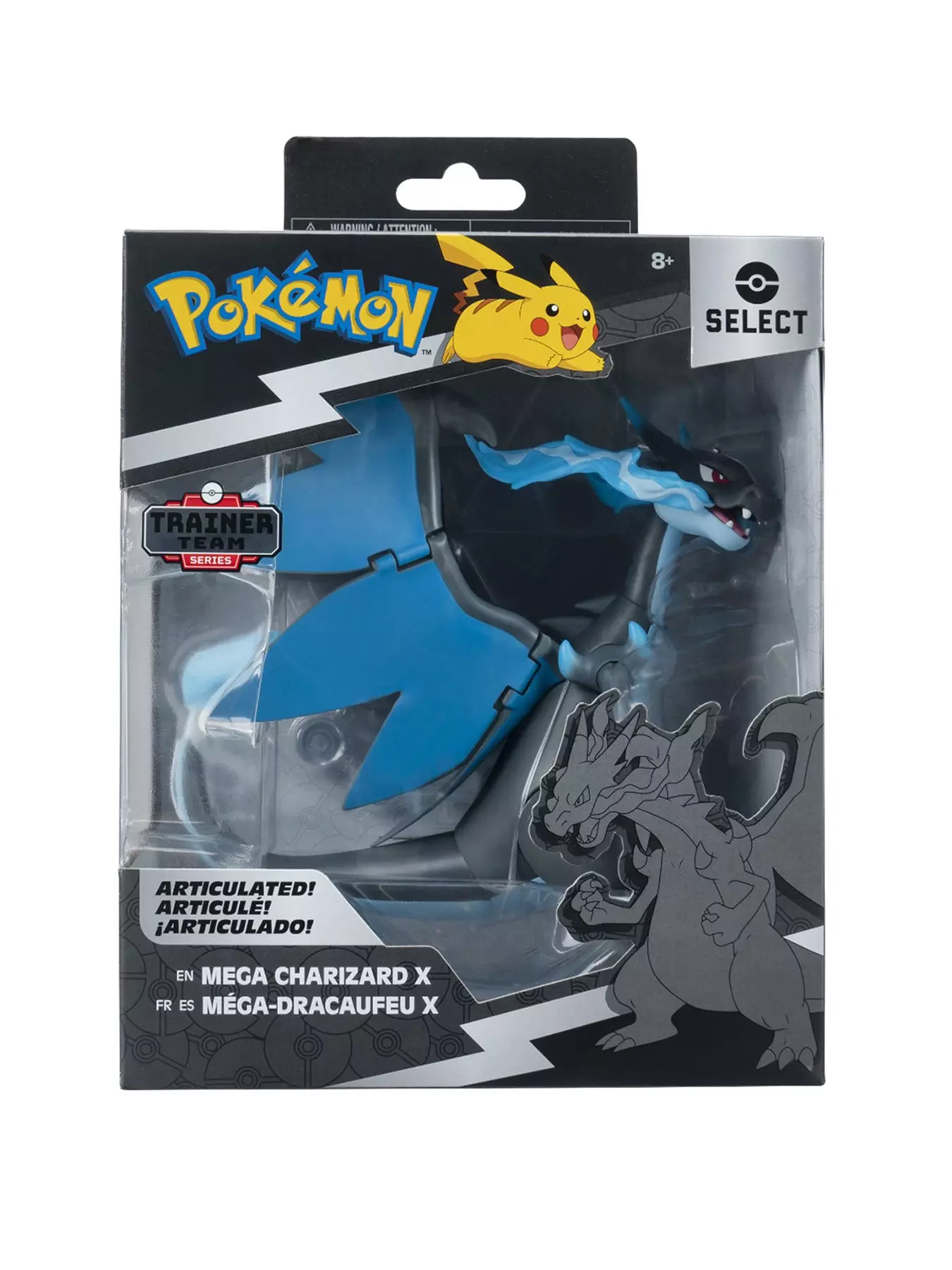 Choose Mega Charizard X, the Mega Evolution of the Flame Pokémon. This 6-inch super-articulated figure is highly detailed and features over 15 points of articulation. It also includes a special posing arm stand for dynamic display. Boxed in the Select Series' signature black and silver packaging, Mega Charizard X looks like it flew right out of the Pokémon Animated Series. Team up with this Fire- and Dragon-type and build the ultimate Pokémon Select team. Officially licensed Pokémon product from Jazwares. Ages 8+- Accessory List: (1) 6-Inch Super-Articulated Mega Charizard X (1) Posing Arm Stand