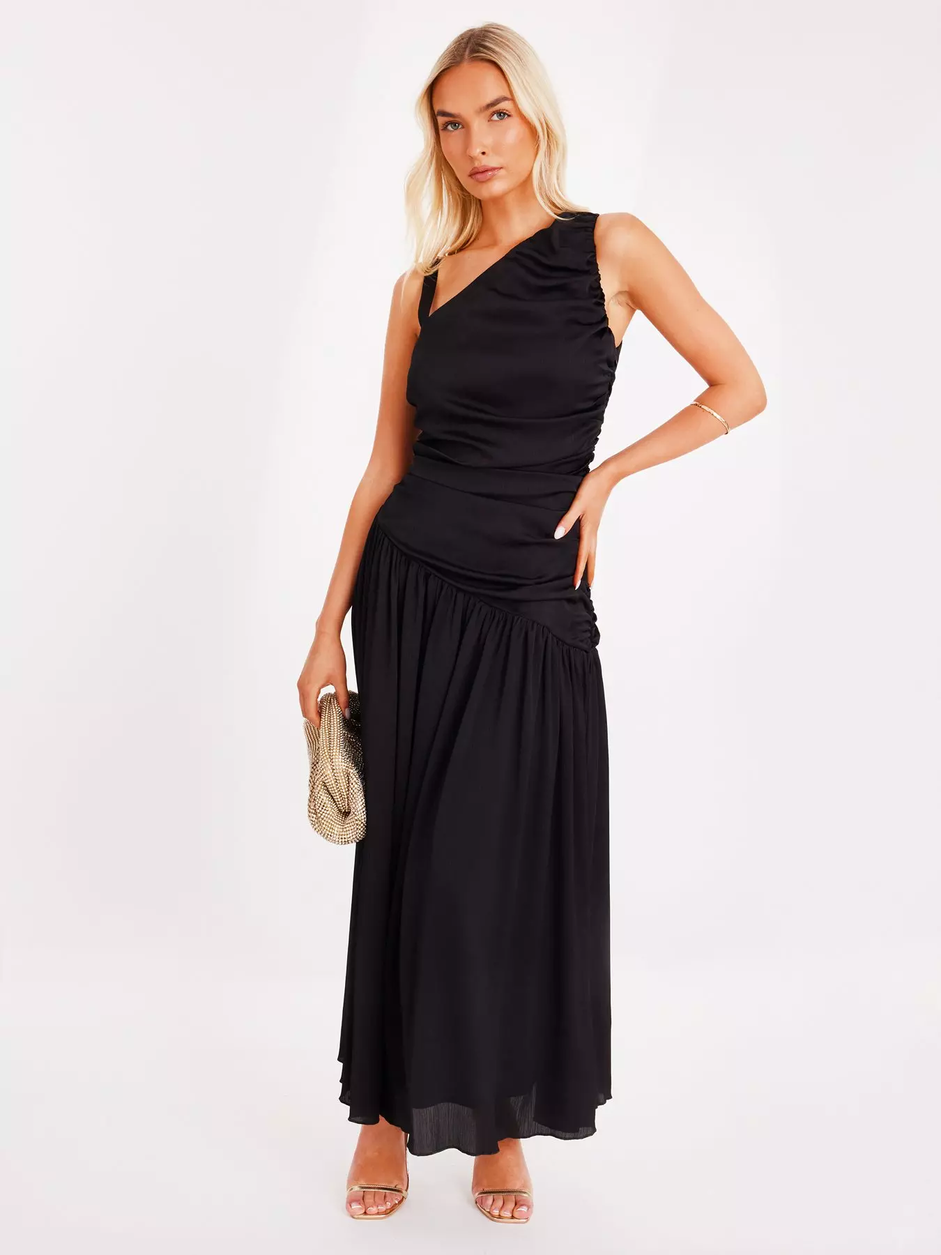 QuizBlack Asymmetric Drop Waist Midaxi Dress