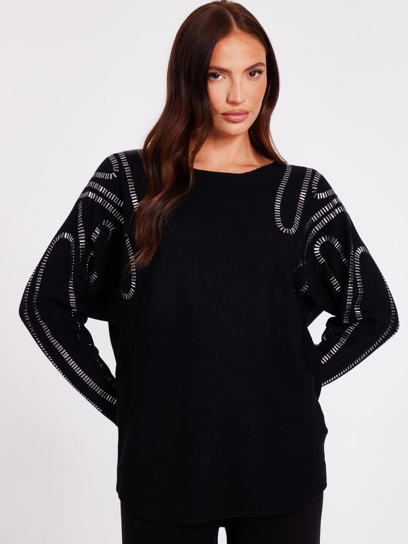 Quiz Black Diamante Stud Jumper
