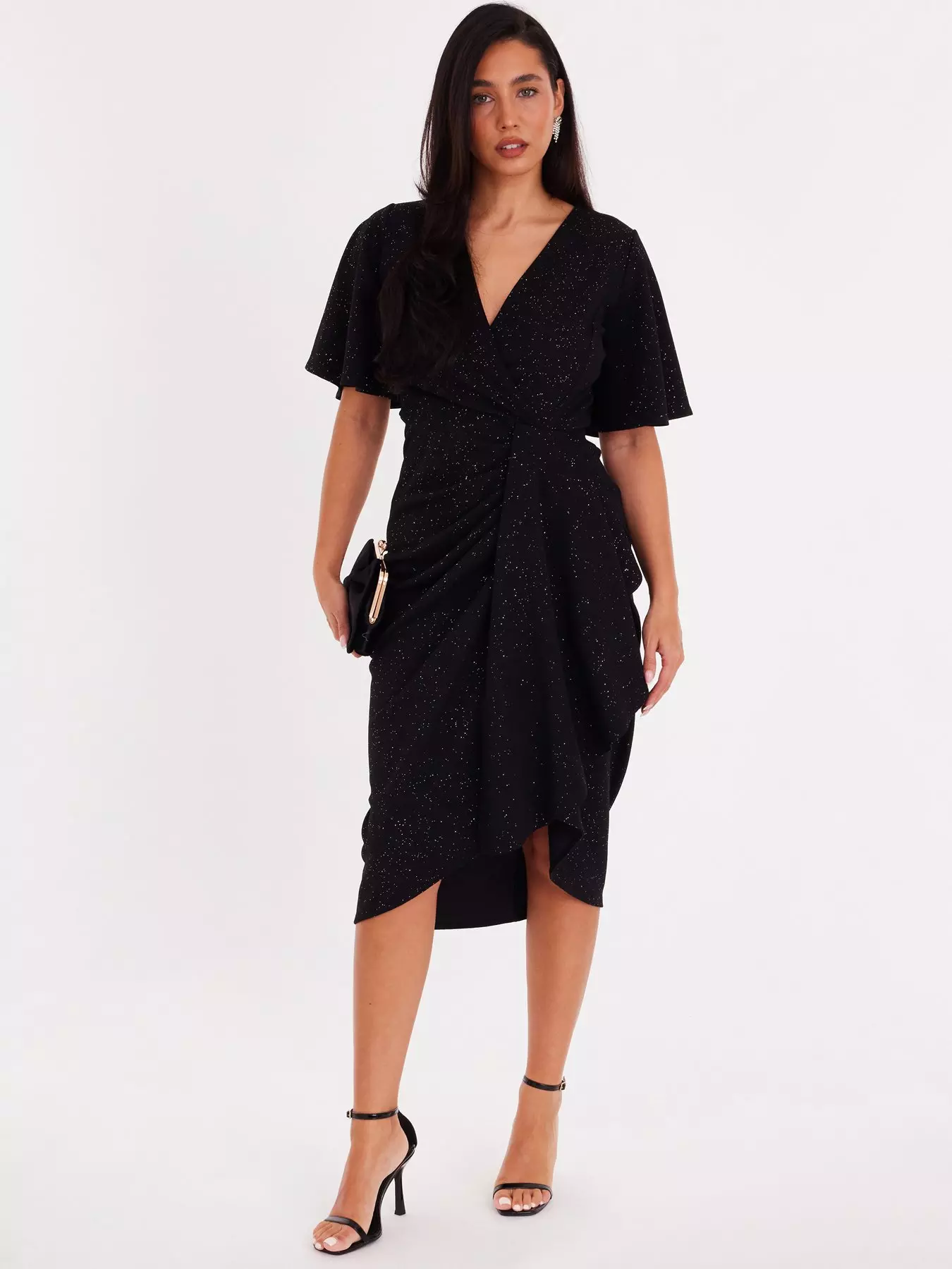 E.A.N: 5 0 6 3 3 3 1 3 3 2 2 8 3Quiz Black Glitter Ruched Midi Dress