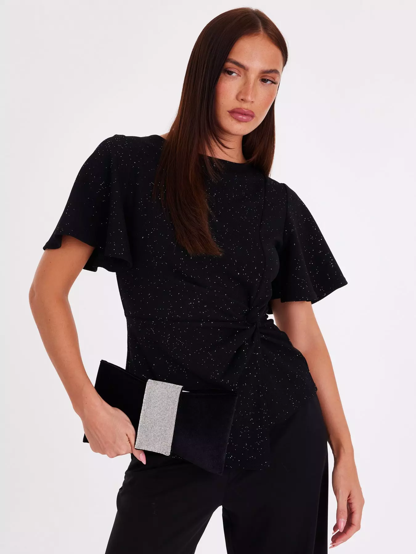 QuizBlack Glitter Twist Front Top