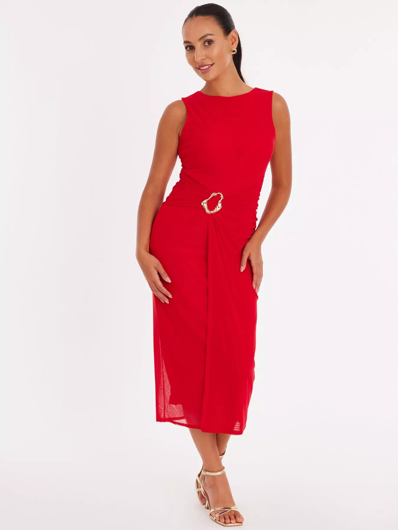 QuizPetite Red Mesh Buckle Midaxi Dress