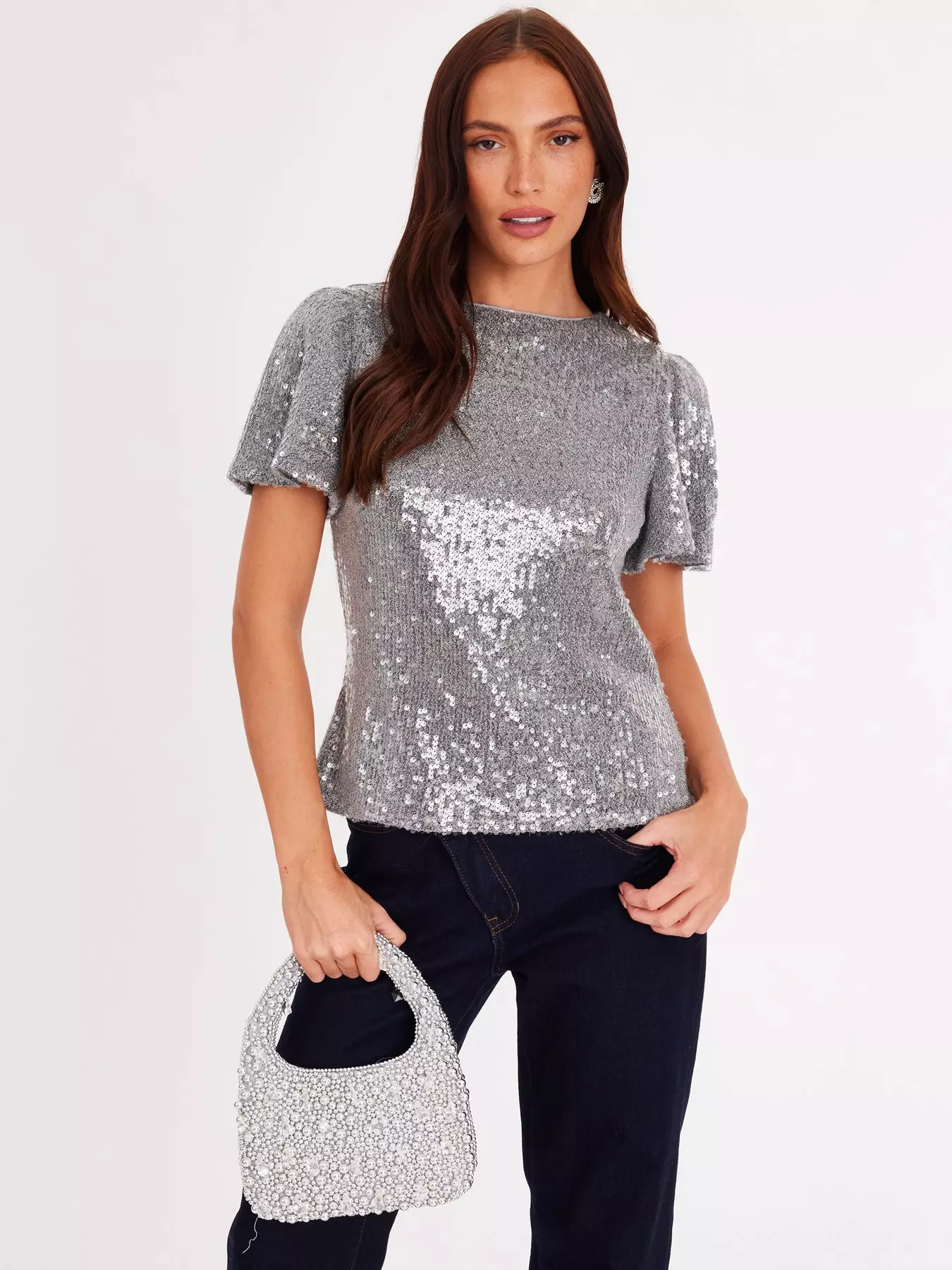 E.A.N: 5 0 6 3 3 3 1 3 1 0 2 4 3Quiz Silver Sequin Embellished Top