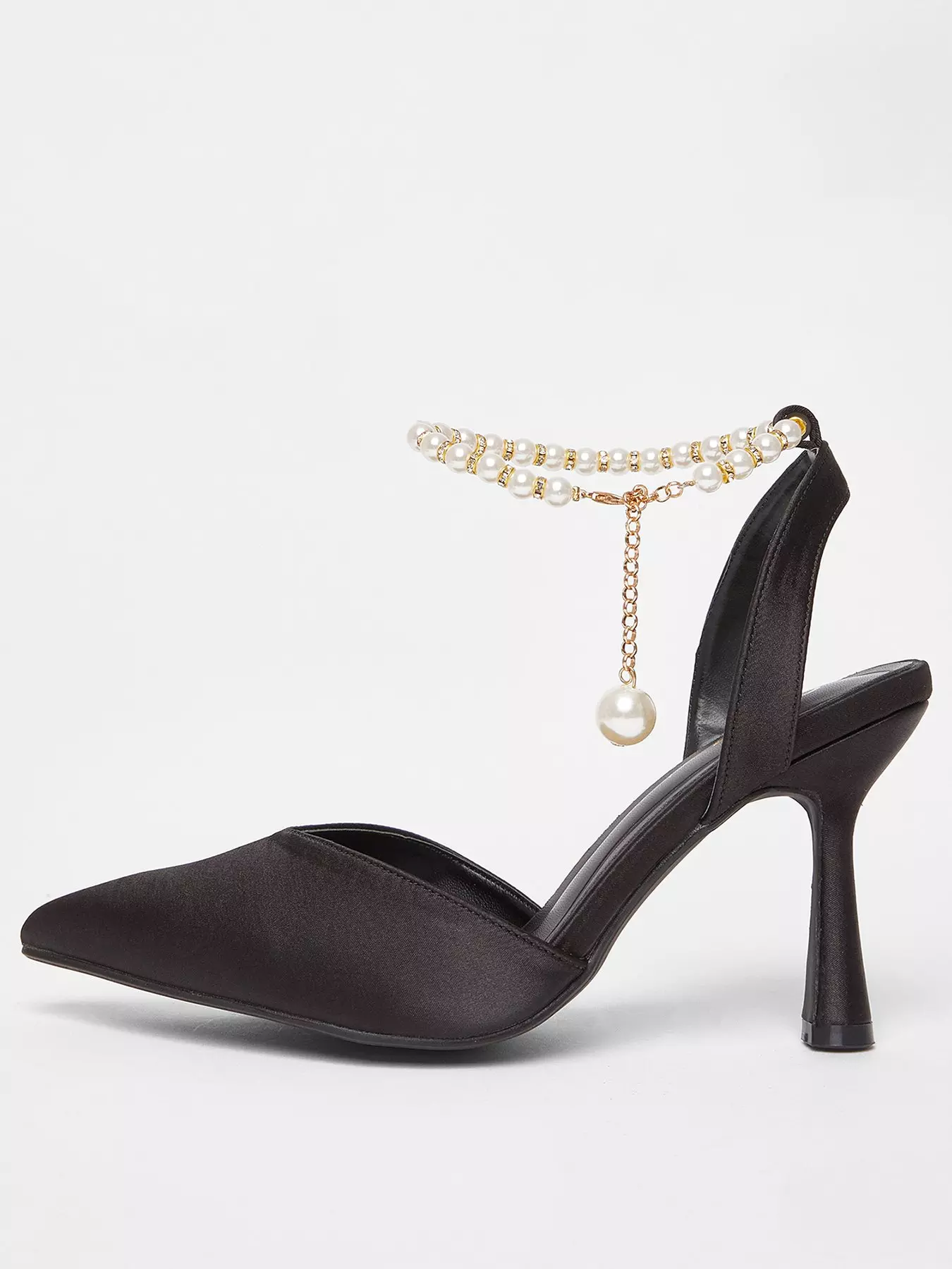 - Satin finish - Pearl ankle strap - Pointed toe - Court style - Heel height: 9.5 cm / 4 inches approx - Excluding trims - Wipe clean- Lining: Textile/Other